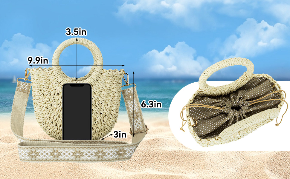 - حقيبة صغيرة ذات القش: الطول × العرض × الارتفاع: 9.8 × 3.2 × 6.3 بوصة (لا تشمل المقبض)