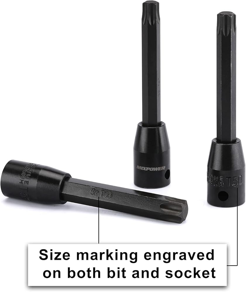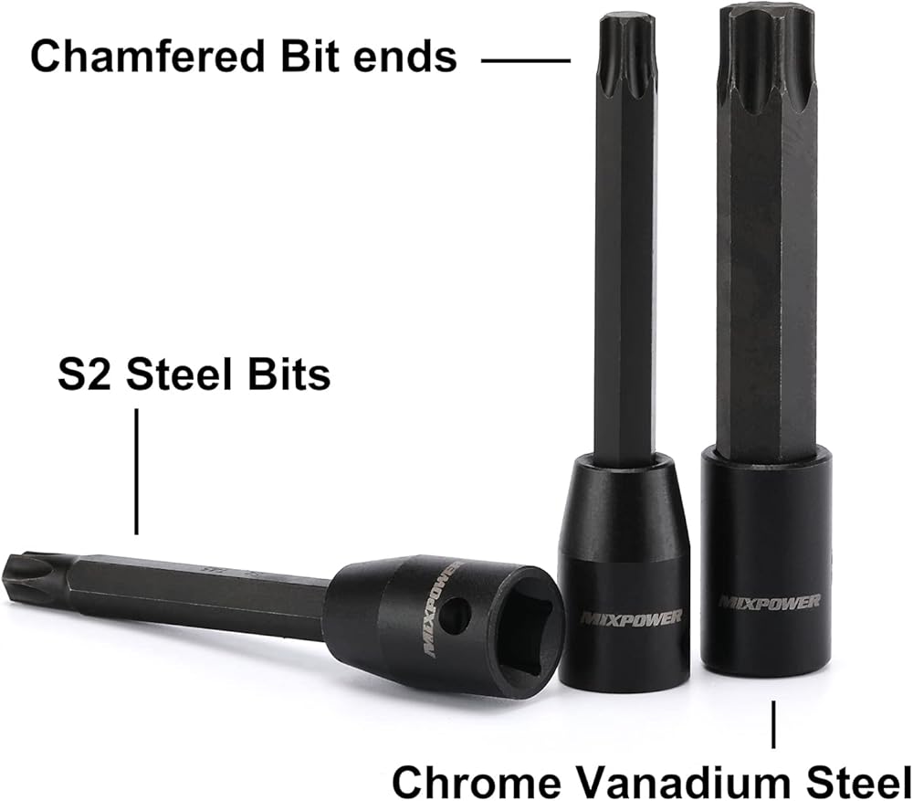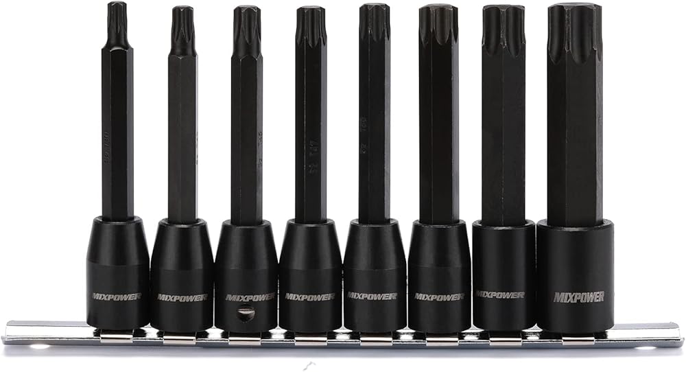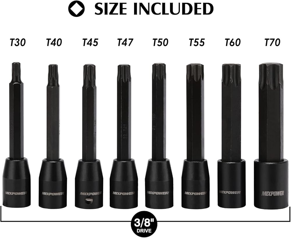 مجموعة مقابس توركس طويلة جدًا من MIXPOWER، طول 3.5 بوصة، لقمة توركس في محرك 3/8 بوصة T30 - T70، مجموعة 8 قطع