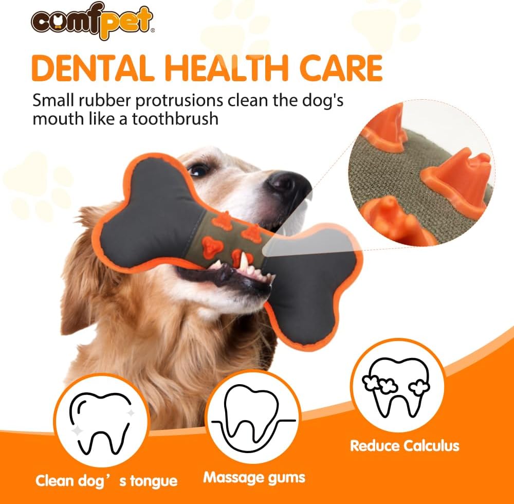 🐾 تنظيف الأسنان - النتوءات المطاطية الفريدة من نوعها في لعبة المضغ كومفيت للكلاب تمنح كلبك تجربة مضغ أفضل، وتساعد على تنظيف وتدليك اللثة أثناء اللعب، وتقليل تراكم البلاك والجير أثناء مضغ الكلاب.