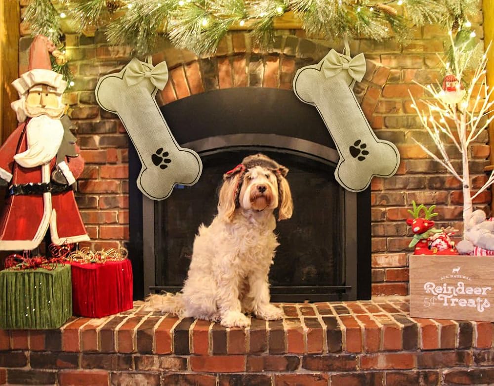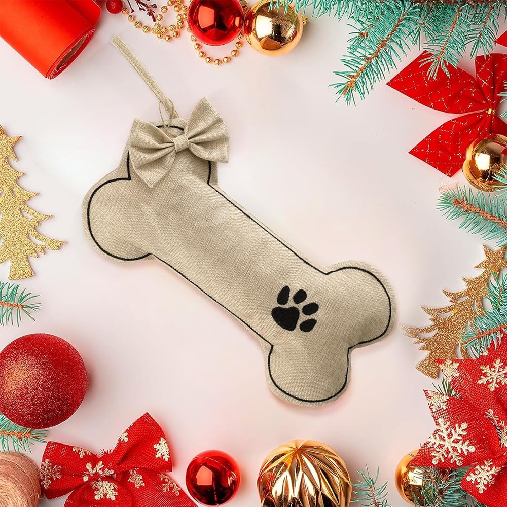 جوارب عيد الميلاد على شكل عظمة الكلب من DYSHAYEN، جوارب من الخيش للكلاب الأليفة في عيد الميلاد المجيد، زينة للحيوانات الأليفة (مخلب الكلب)