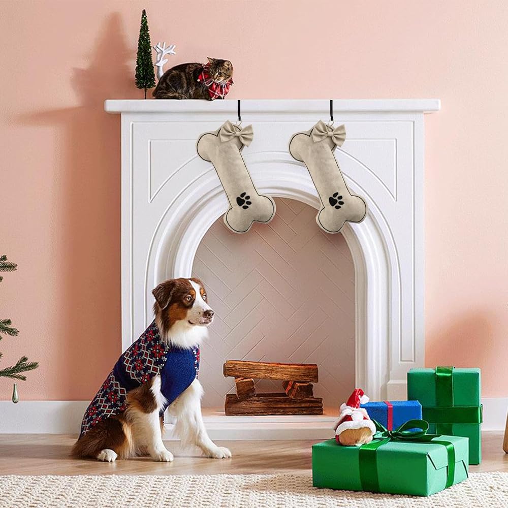 • 【DESIGN】The dog bone is in the shape of a cute bow and has a sturdy hanging loop,making it a cute Christmas stocking.100% Hand-made Cute Christmas Stockings.