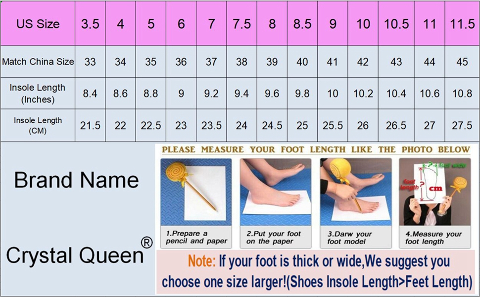 ملاحظات: اختر وفقًا لطول قدميك، إذا كان نعلك عريضًا، فيرجى اختيار مقاس أكبر بدرجة واحدة. يتم قياس جميع الأبعاد يدويًا مع انحراف (يتراوح) عند 0.1-0.10 بوصة. إذا لم يكن الأمر كذلك بأي حال من الأحوال، فإننا نأسف لذلك