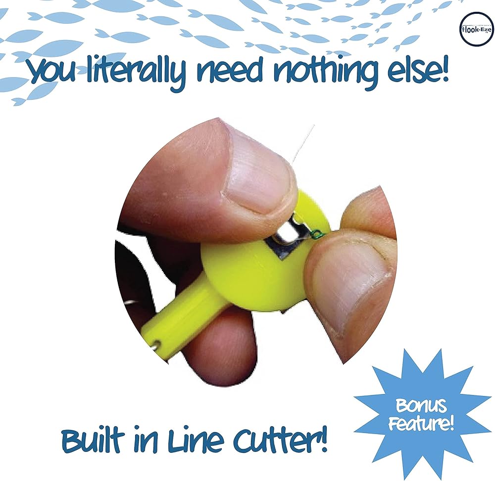 Fishing Knot Tying Tool for your fishing gear. Cover fishing hooks on fishing poles and travel safely. Built in Stainless Steel Line Cutter Suitable for Saltwater and Freshwater fishing, perfect for use in a Kayak and Ice Fishing. Hook-Eze also helps to tie Swivels Jig Heads and Speed Clips for attaching lures or other rigs including a small variety of Flies. Suitable for tackle used for smallmouth and largemouth bass, carp, walleye, perch and crappie and more species