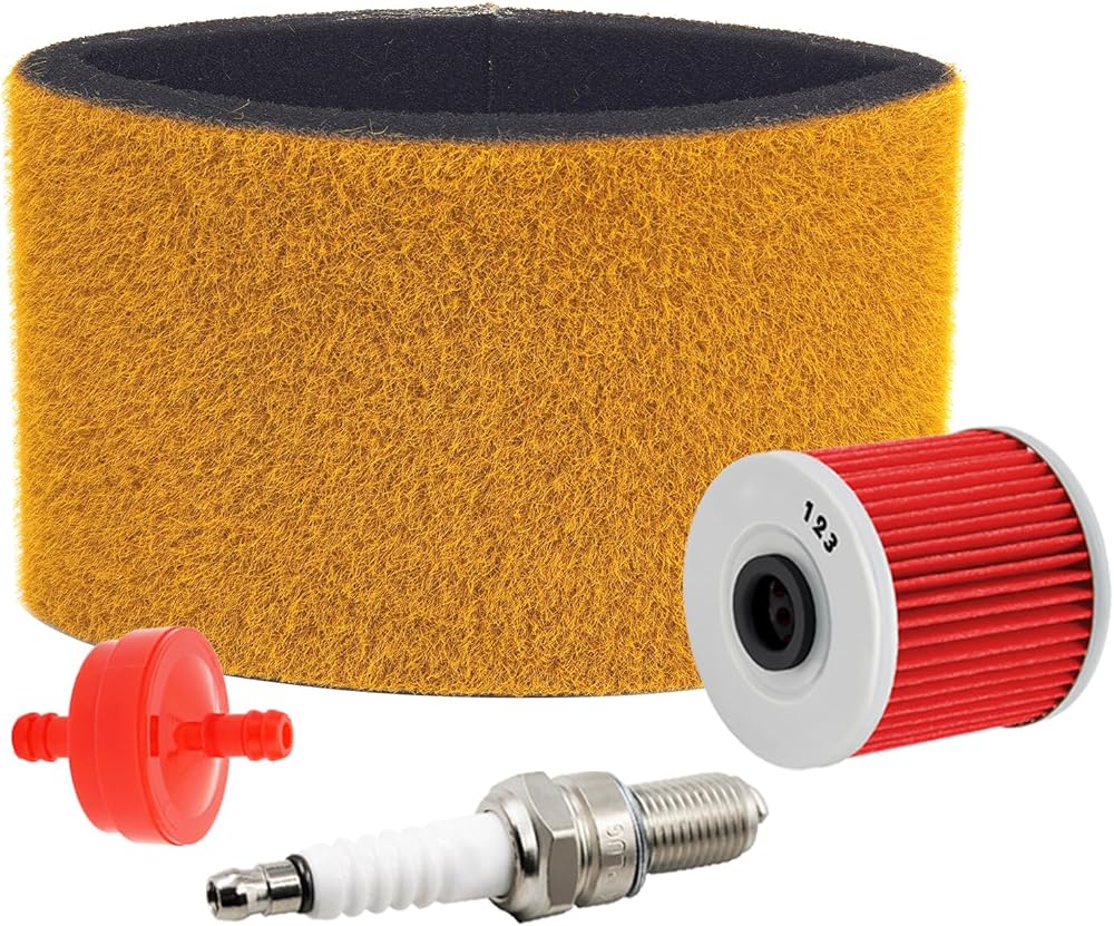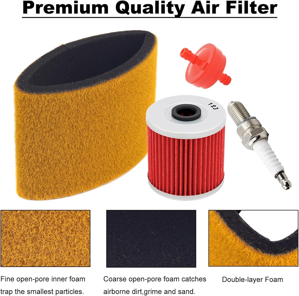 • ✅Package Includes:1 x Air Filter + 1 x Oil filter + 1 x Spark Plug + 1 x fuel filter; Easy To Install-old or damaged air filters can be easily replaced in minutes without complicated hand tools.
