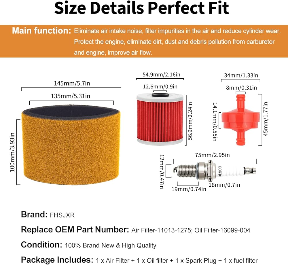 • ✅Replace OEM Part Number: Air Filter-11013-1275; Oil Filter-16099-004