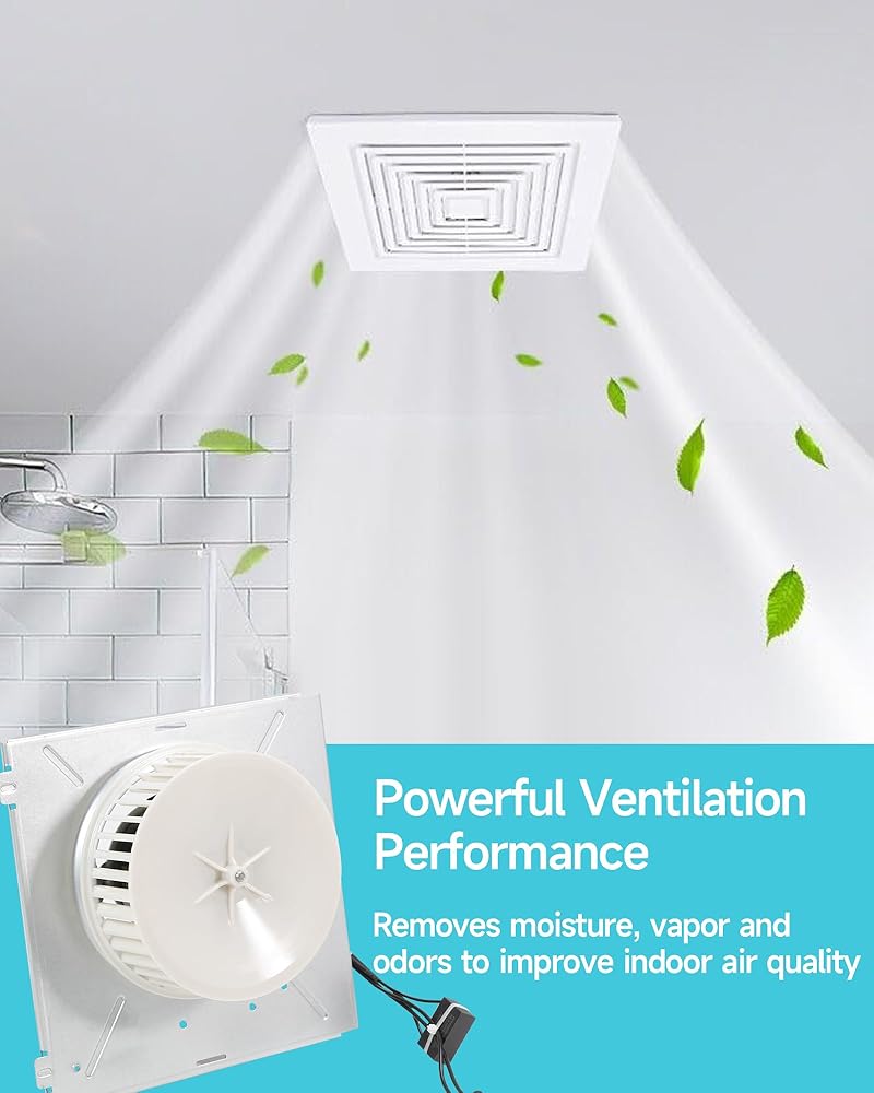 أداء تهوية قوي: يمكنه إزالة الرطوبة الزائدة والبخار والروائح الكريهة في الحمام بسرعة وفعالية، والحفاظ على بيئة منعشة وصحية، وتحسين جودة الهواء الداخلي.