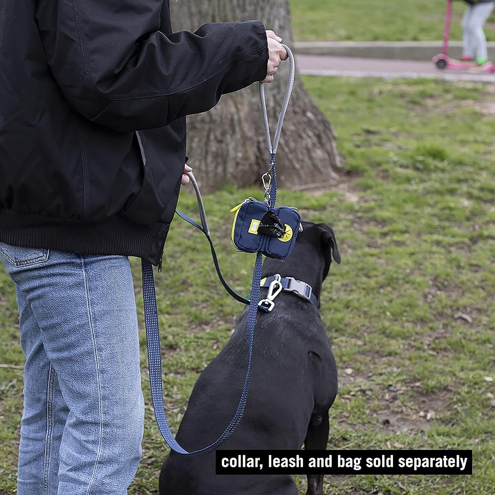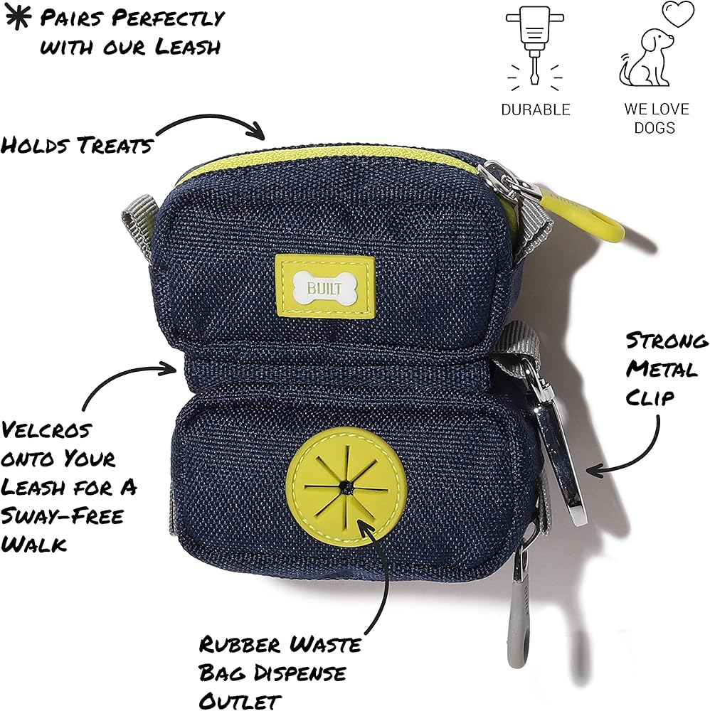 This Built Duo Leash Bag is the perfect accessory for your dog. One compartment for waste bags with a rubber dispenser for quick dog waste bag access and another for treats or personal items. Attaches to leash with strong metal clip and velcros on to leash for a sway free walk. Made with durable tear-resistant polyester with two easy to use zipper closures. Fits standard dog waste bags. Pairs perfectly with our Nightsafe Dog Leash. Attractive and sturdy, its exactly what dog parents have been looking for.