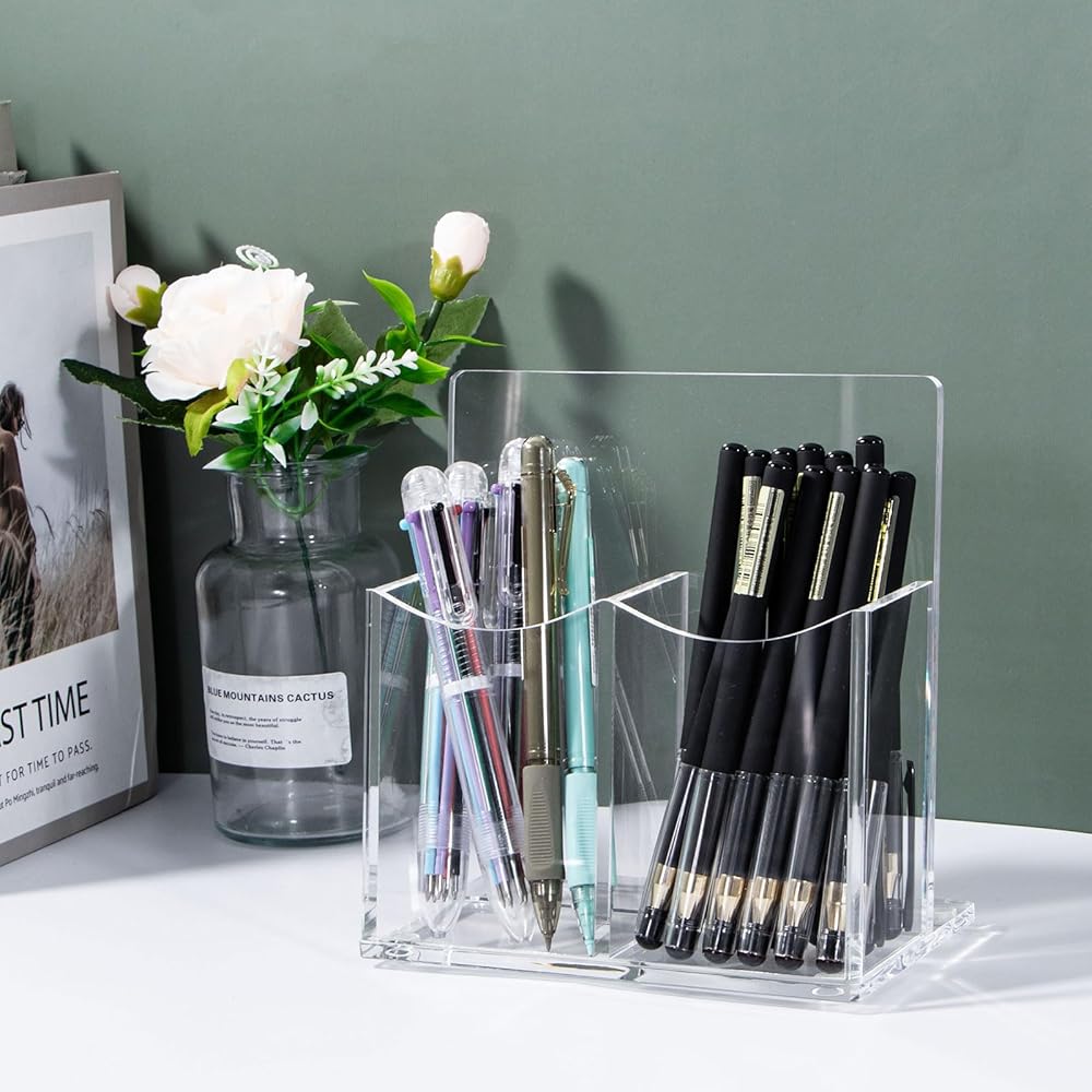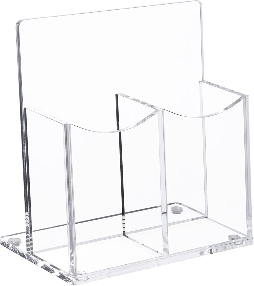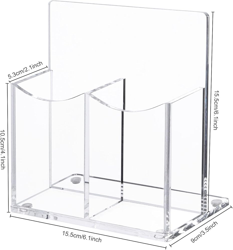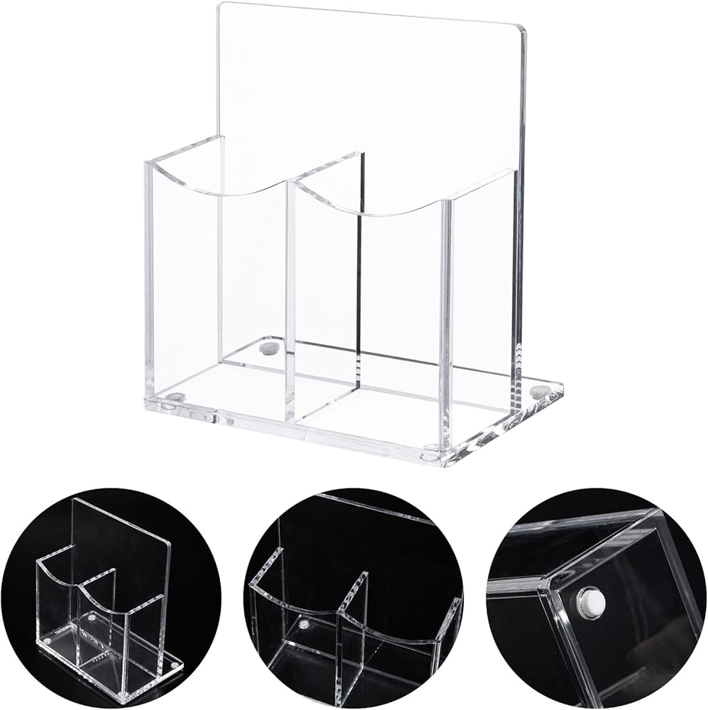 حامل جهاز التحكم عن بعد من الأكريليك الشفاف، حامل أقلام مكتبي مكون من حجرتين حامل أقلام للبطاقة، مجموعة الملحقات الرسمية، 5.9 × 3.5 × 6.3 بوصة
