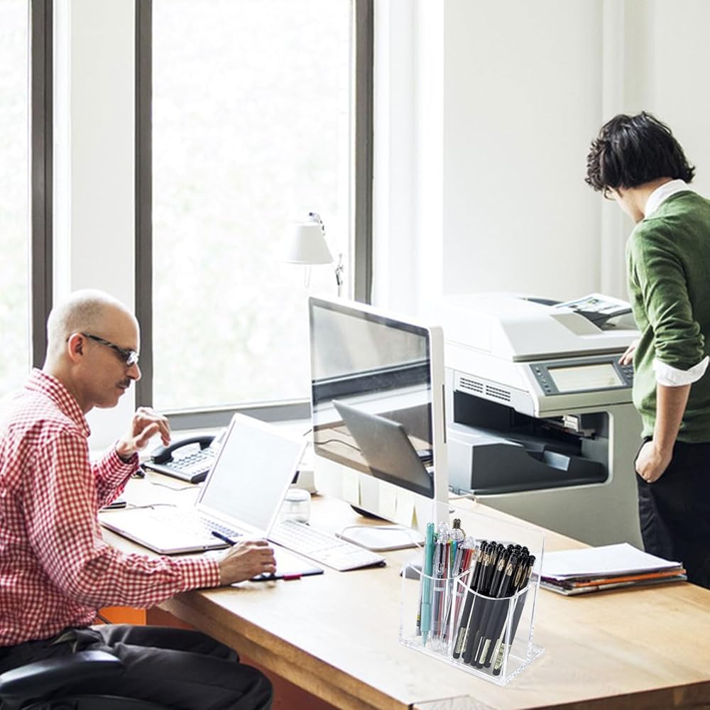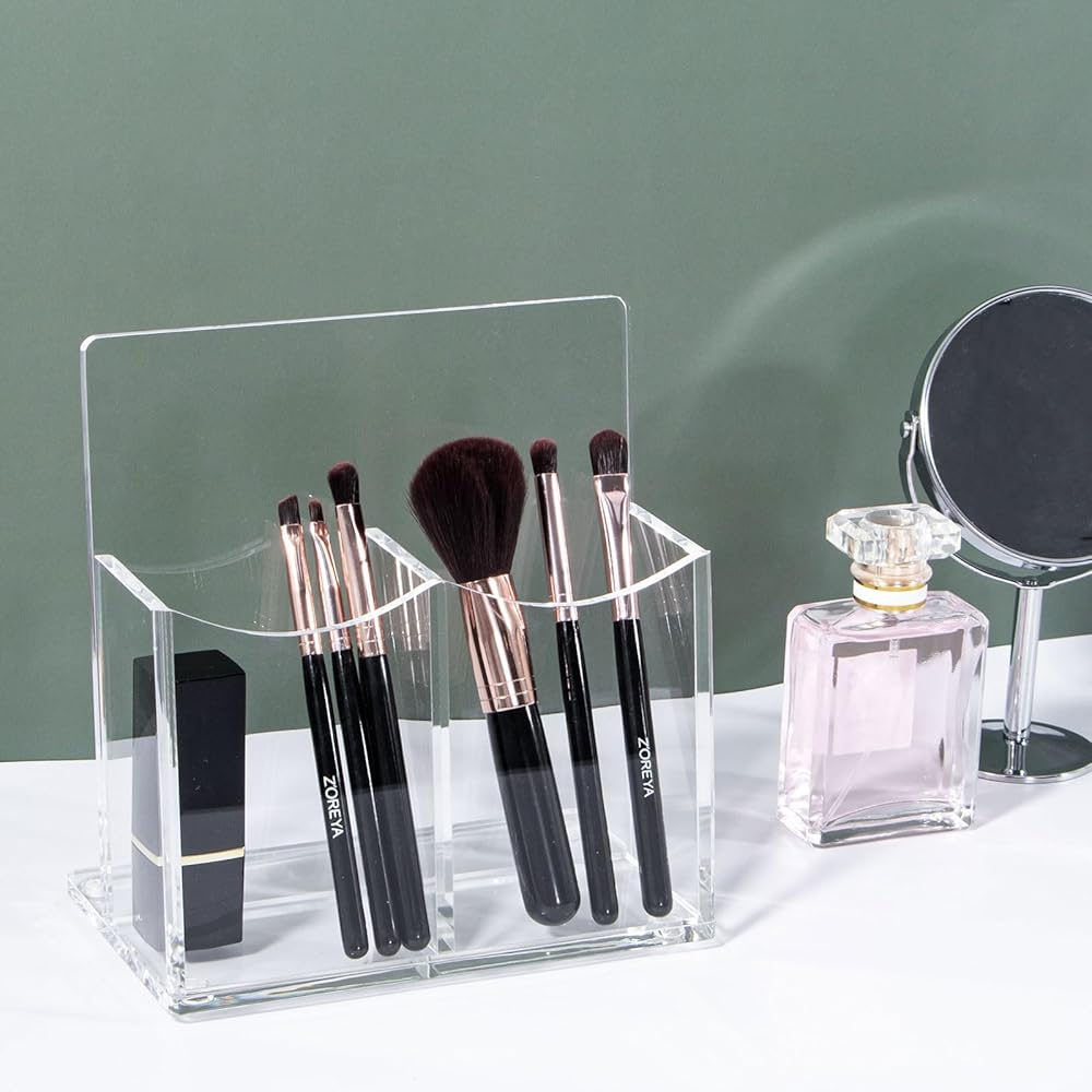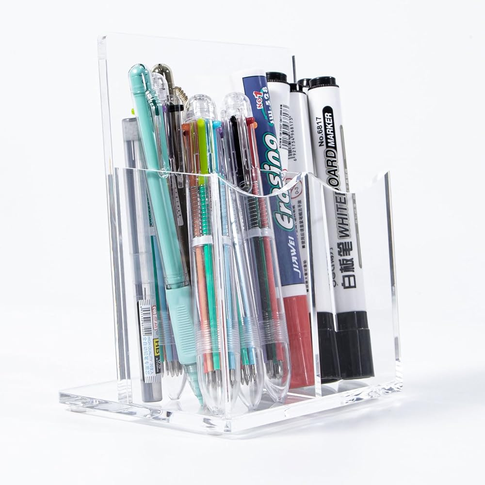 حامل جهاز التحكم عن بعد من الأكريليك الشفاف، حامل أقلام مكتبي مكون من حجرتين حامل أقلام للبطاقة، مجموعة الملحقات الرسمية، 5.9 × 3.5 × 6.3 بوصة