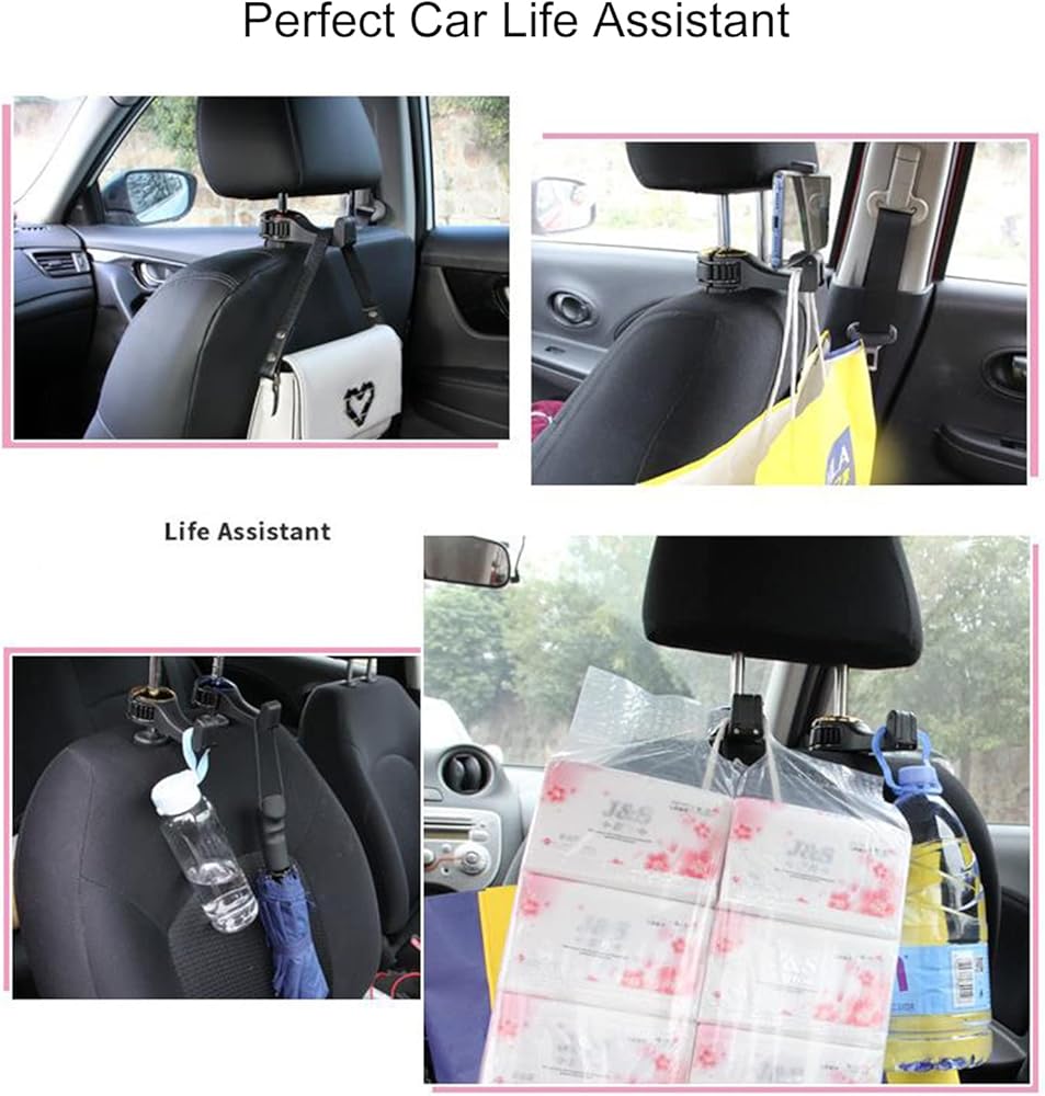 • 🚕Multi-funtional & Space Saving & Tidying🚕 These car headrest hooks are great for hanging groceries like shopping bags, clothes, handbags, purses from falling during an emergency brake or turns. Keeping your love car tidy and comfortable. It perfectly combines the mobile phone holder suitable for phones with a width between 1.9 and 3.5inches. Let backseat passenger enjoy car time with video free hand. It is a great car essentials/car gadgets/car accessories for women.