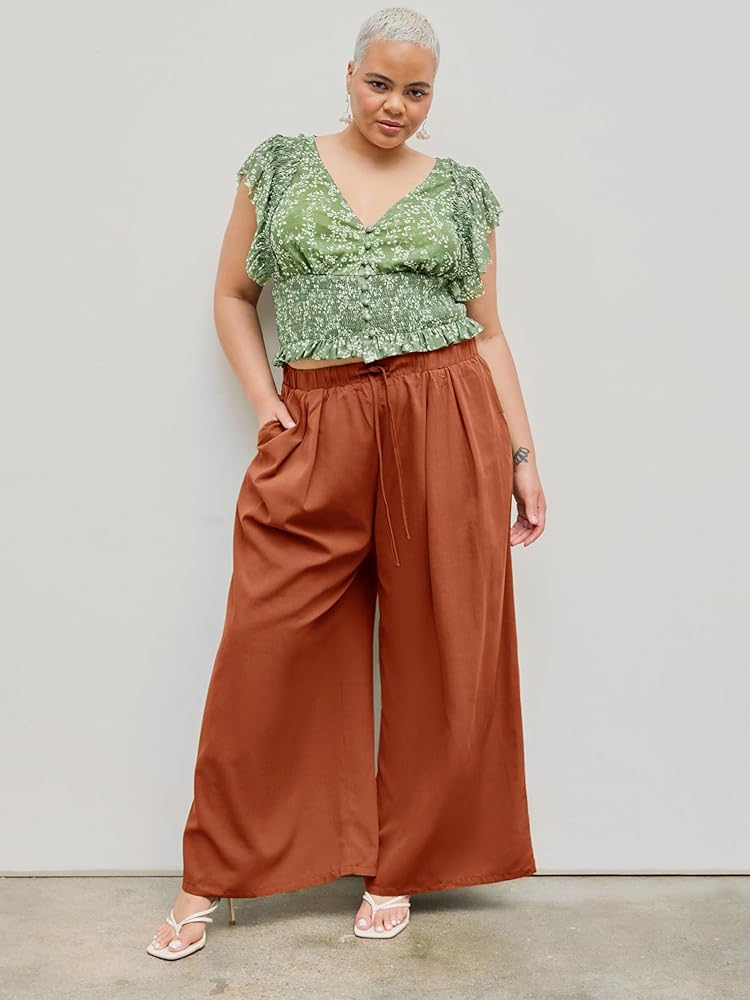 مقاس مريح: استمتع بمزيج مثالي من الأناقة والراحة مع هذا البنطلون، الذي يتميز بحزام خصر مطاطي متوسط الارتفاع ورباط قابل للتعديل لملاءمة مخصصة. يوفر التصميم الكبير ذو الساق الواسعة شعورًا بالاسترخاء، مما يضمن الراحة طوال اليوم دون التنازل عن الموضة.