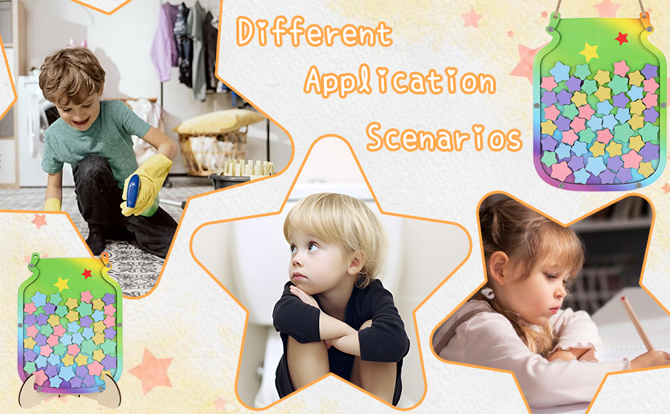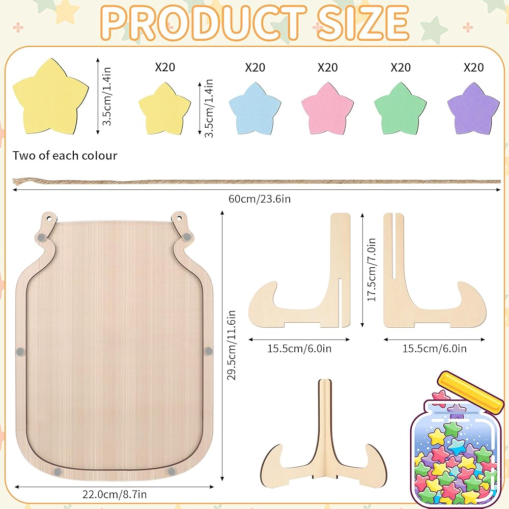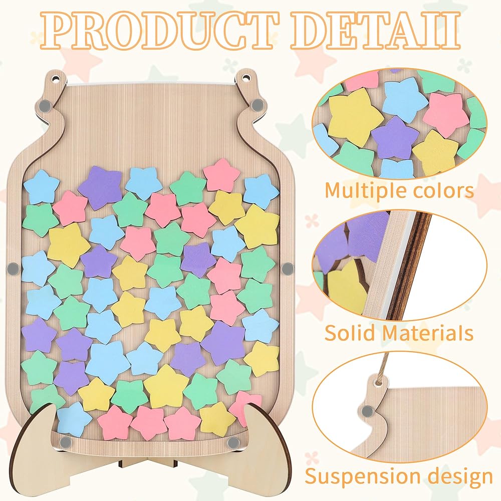 مواد عالية الجودة - البرطمان النجمي مصنوع من مواد خشبية فاخرة، مما يضمن المتانة والاستخدام طويل الأمد. تتميز النجوم بسطح أملس، مما يجعلها لعبة مكافأة آمنة للأطفال. يمكن إعادة استخدام الجرة والاستمتاع بها لفترة طويلة.