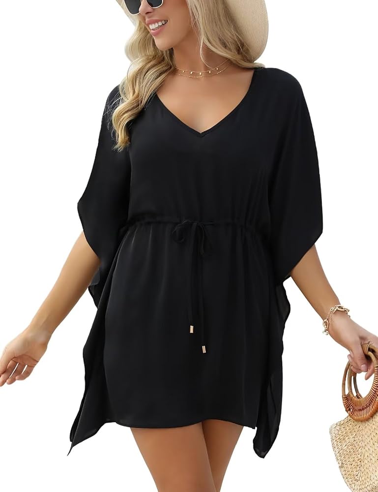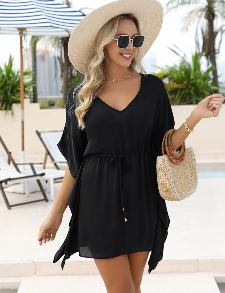 خصر برباط: أكمل مظهرك على الشاطئ مع غطاء ثوب السباحة هذا برقبة على شكل حرف V، المصمم بخصر قابل للربط، مما يبرز جسمك مع الحفاظ على الراحة.