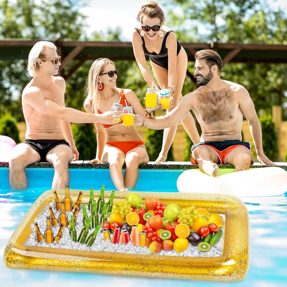 Keep Cold and Fresh: the inflatable serving bar is composed of quality PVC material and can hold a lot ice to keep beverages, snacks and other food items cold for hours during outdoor parties, allowing your families and guests to enjoy coolness on hot days