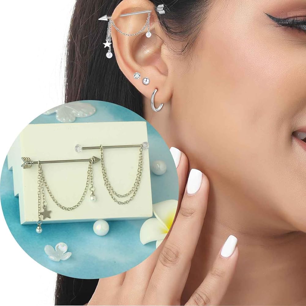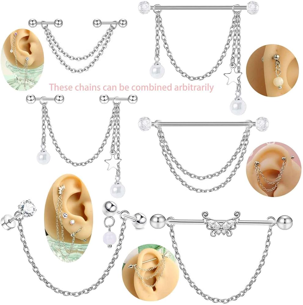 These Industrial Piercing Jewelry Can be Used as Cartilage Earring, Helix Tragus Daith Piercing Jewelry, One Set Meet all Your Piercing Needs.