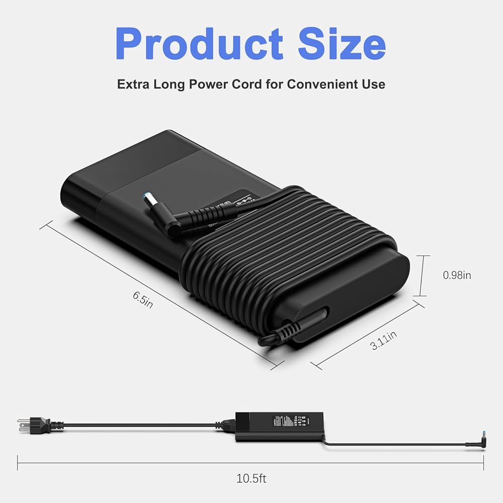 شاحن كمبيوتر محمول 200 وات لإخراج Hp: 19.5 فولت ~ 10.3 أمبير 200 وات (متوافق أيضًا مع 150 وات 135 وات 120 وات)؛ الإدخال: 100-240 فولت ~ 50-60 هرتز ؛ حجم الموصل: 4.5*3.0 مللي متر طرف أزرق ؛ الطول الإجمالي: 10.5FT.