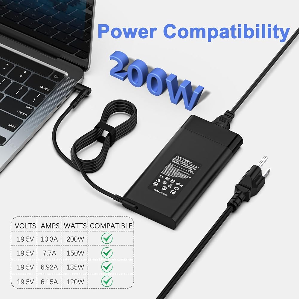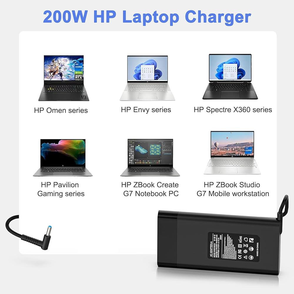 شاحن كمبيوتر محمول 200 واط لجهاز HP متوافق مع HP Omen 15 15t، Omen 17 17t، HP Victus 15 16 15l i7، Hp Pavilion 15 16 17 كمبيوتر محمول للألعاب، HP ZBook 15 17 G3 G4 G5 G6 G7 Series، Envy 15 2020، ZBook Studio G3 G4 G5 G6 G7 G8، ZBook Fury G7 G8، ZBook 15u G3 G4 Series، HP 15 17 15 15t 15u 17 17t 15-ce000 15-dc000 17-an000 15-cx0000.