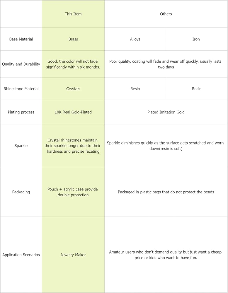 متعددة الاستخدامات ومتينة: مصنوعة من خرز فاصل من حجر الراين وقاعدة نحاسية، ومطلية بالذهب الحقيقي عيار 18 قيراط للحصول على أقصى قدر من المتانة والأناقة، هذه الخرزات مثالية للقلائد والأقراط والأساور والدبابيس والخلخال للمظهر الكلاسيكي أو الحديث.