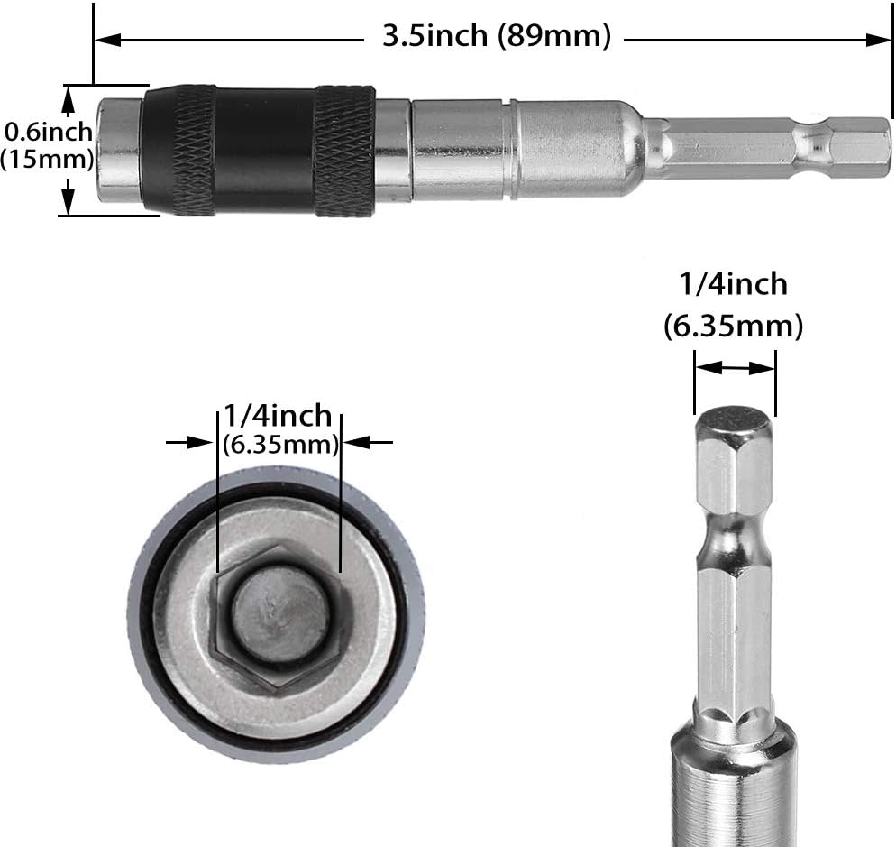 تعمل ساق التوصيل السريع مقاس 1/4 بوصة مع جميع المثاقب الكهربائية ومفاتيح المقبس.