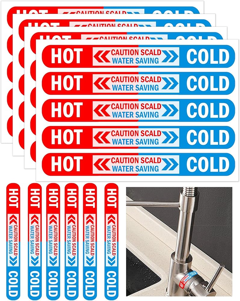 The cold and hot signs indicate that the stickers are made of vinyl material. It can adhere well to smooth surfaces such as ceramics, glass, metal, wood, etc. Waterproof and reliable, not easy to fade or peel off, and tear off without leaving any marks.
