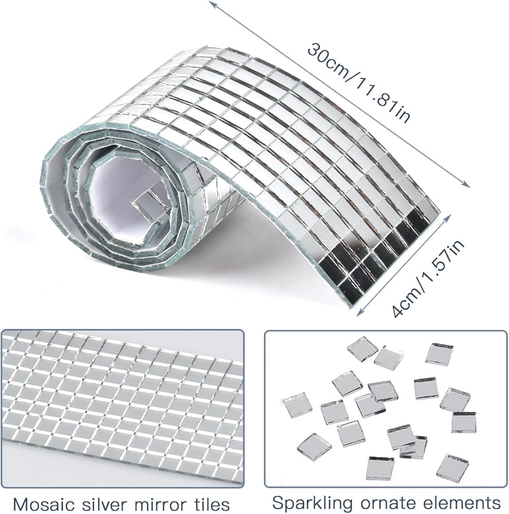 • 【Good Quality】These mini mirror tiles are made of real glass and the reflection effect is good. The size of each mini mosaic tile is 5 x 5 mm and the size of each glass mosaic strip is 4 x 30 cm.