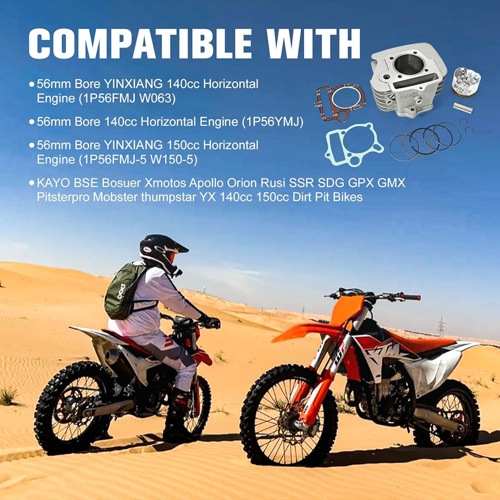 【الملاءمة-1】متوافق مع محرك أفقي YINXIANG YX140cc 150cc مقاس 56 مم (1P56FMJ W063، 1P56YMJ، 1P56FMJ-5 W150-5).