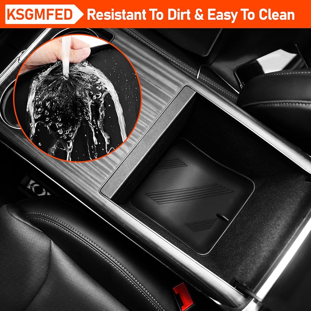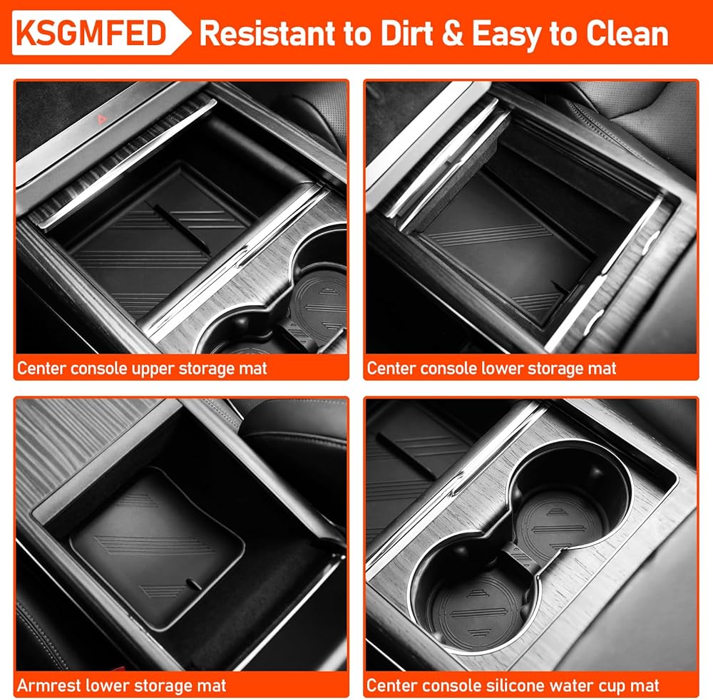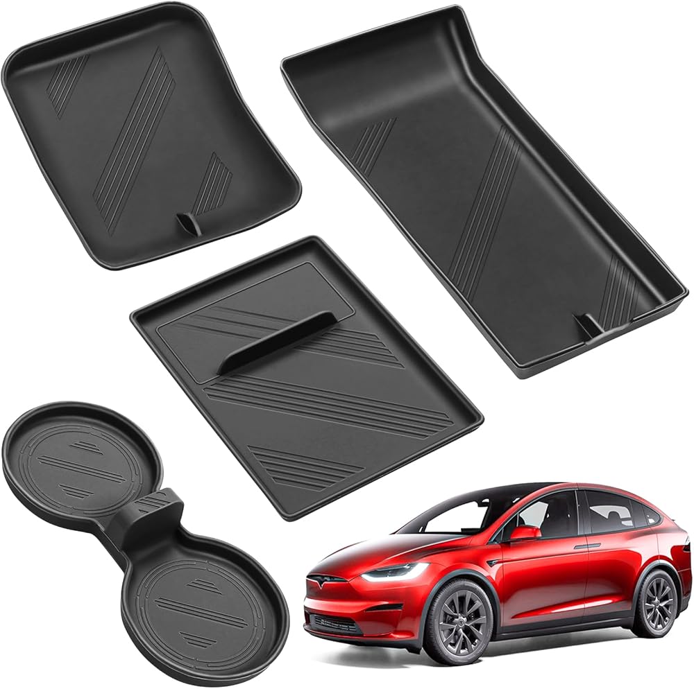 4 قطع صينية تنظيم وحدة التحكم المركزية متوافقة مع طراز Tesla X/S، حصيرة تخزين مسند الذراع لملحقات داخلية طراز Tesla Model X/S 2022-2023، منظم مسند ذراع وحدة التحكم العلوية والسفلية، أسود