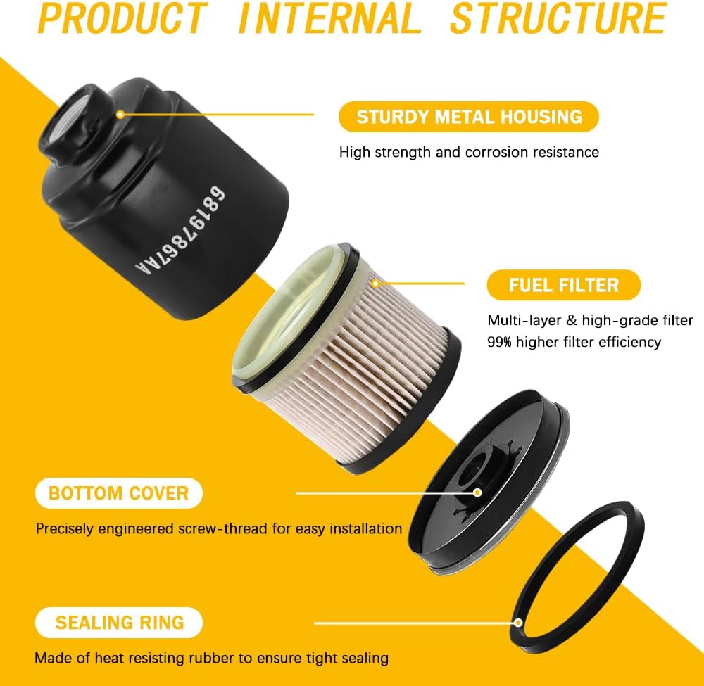 جودة عالية: فلتر الوقود 68157291AA مصنوع من ورق فلتر دقيق عالي الجودة. سوف يقوم بتصفية معظم الغبار والماء للحفاظ على نظافة المحرك.