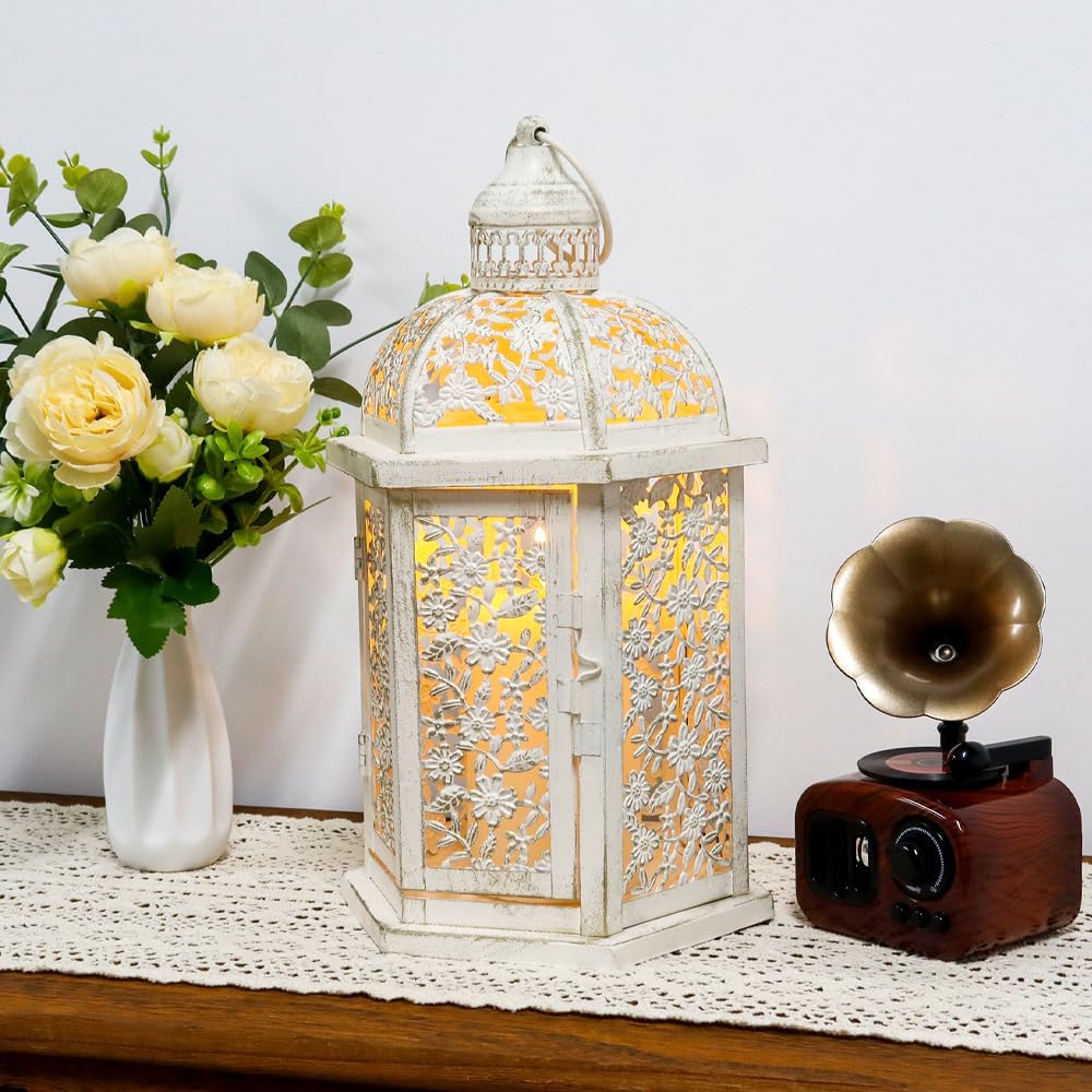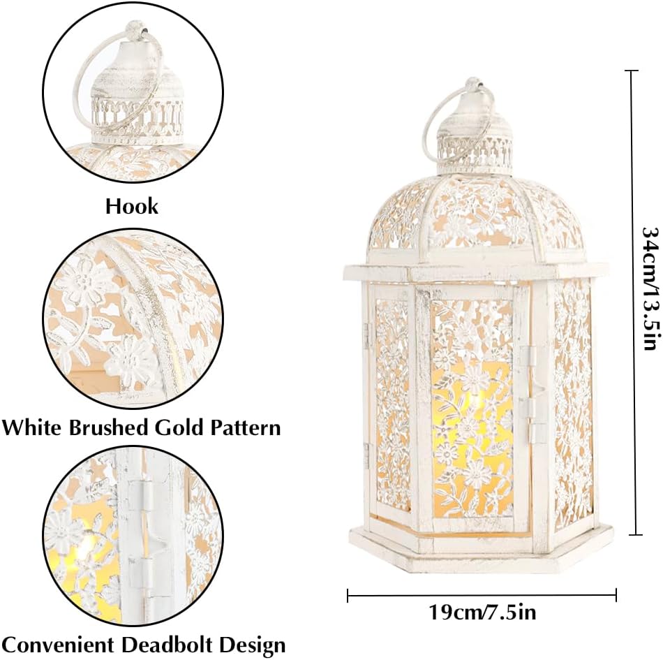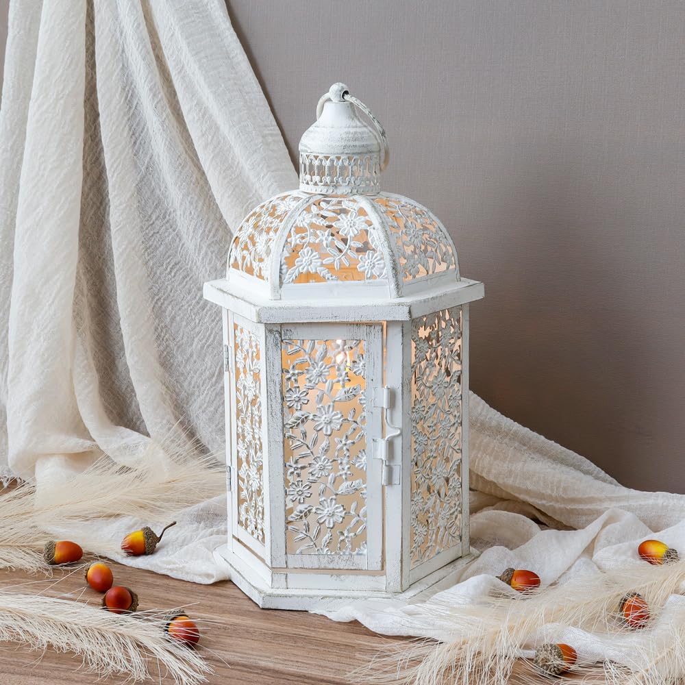 【ألواح زجاجية مقسى ومعدن متين】- أربعة ألواح زجاجية مقسى شفافة - تقلل بشكل كبير من تلف الزجاج عند الفوانيس المزخرفة أثناء النقل، وتحمي الفانوس المزخرف من التغيرات الخارجية. إطارات معدنية قوية، الجزء العلوي الخاص للفانوس كلها ملحومة بشكل جيد. - يعمل كديكور ريفي داخلي وخارجي - مثالي للفناء، والممر، والممر، والرف، والطاولة، والبار، وأكشاك الصور، والفناء، والشرفة، إلخ.