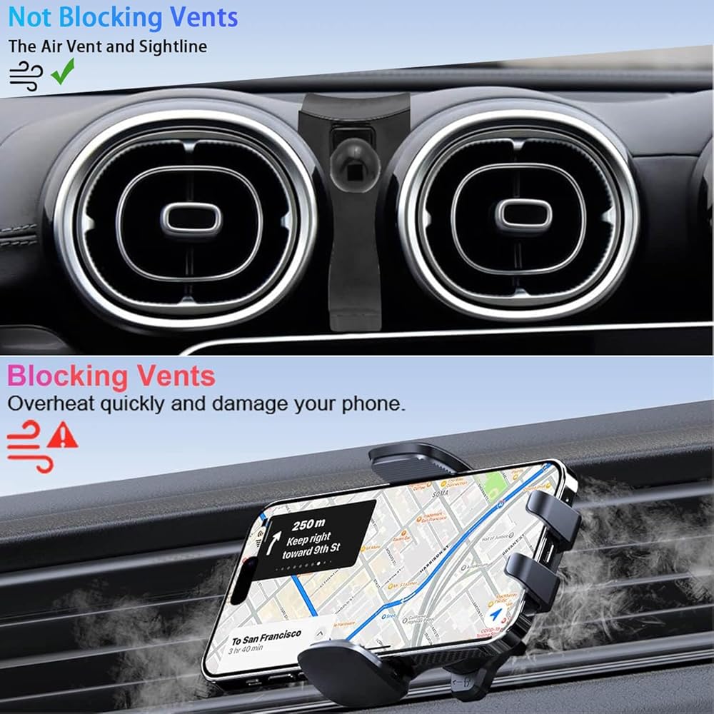 • لا تتنازل عن التهوية: الحجم المناسب تمامًا! لن يشغل حامل هاتف السيارة CARFIB لسيارة Mercedes Benz C Class مساحة في سيارتك أو يستخدم فتحة تهوية مركزية. يتميز حامل الهاتف المغناطيسي هذا بمفصل كروي مرن بزاوية 360 درجة وتصميم دوار يسمح لك بتعديل أي زاوية تحتاجها. يمكنك التبديل بسهولة بين الوضع الأفقي والعمودي دون حجب العرض.