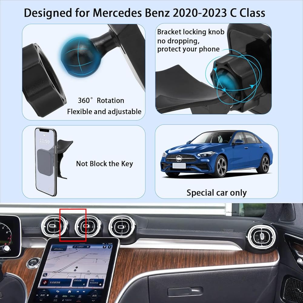 • تصميم نموذج محدد: متوافق فقط مع ملحقات سيارة مرسيدس بنز فئة C 2020-2023. حامل الهاتف المغناطيسي الخاص بنا يناسب تمامًا فتحة تهوية وحدة التحكم المركزية لسيارة Mercedes Benz C Class، مما يجعلك تركز على القيادة. (ملاحظة: يرجى التحقق مرة أخرى من مظهر طراز سيارتك مثل الصورة قبل الطلب)