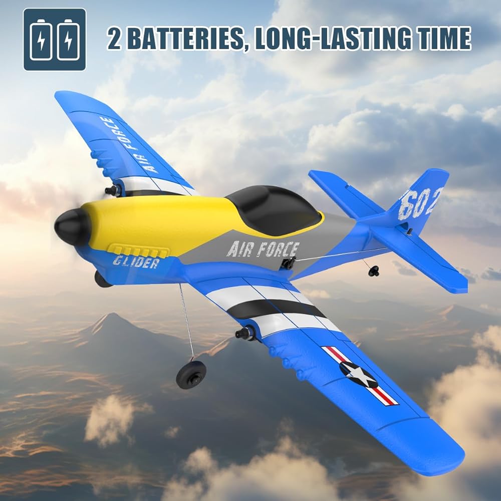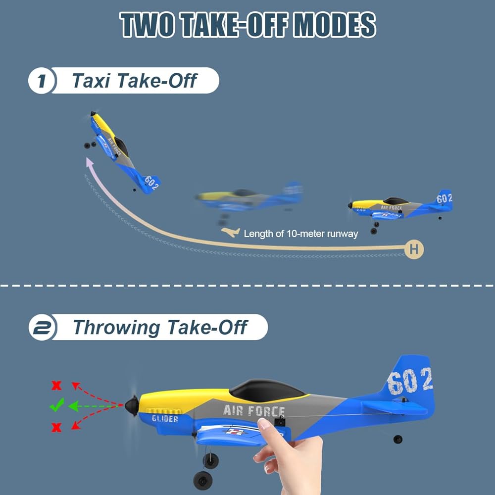 [2 Take-Off Methods] This remote control plane has two ways of take-off ( hand throwing off or sliding off ), built-in automatic flight stabilization system, easy to fly and suitable for beginners.2 channels are very beginner friendly and easy to control. Intelligent gyroscope design make it more stable flying.