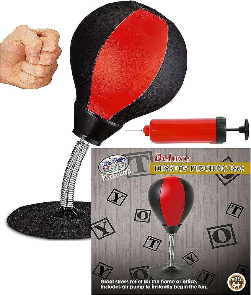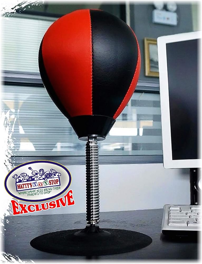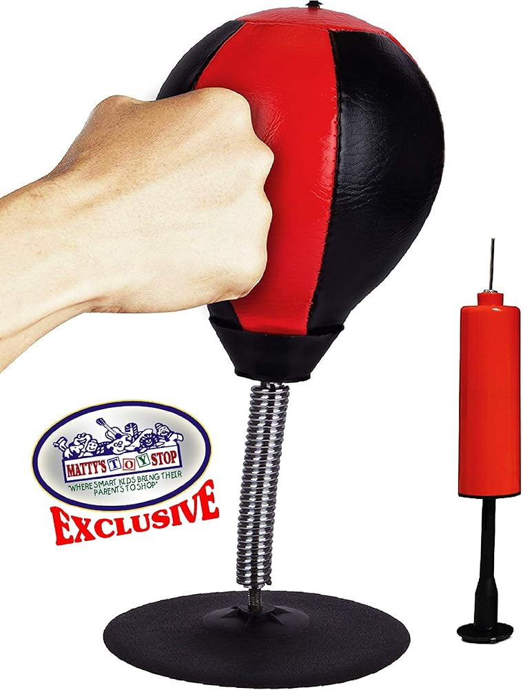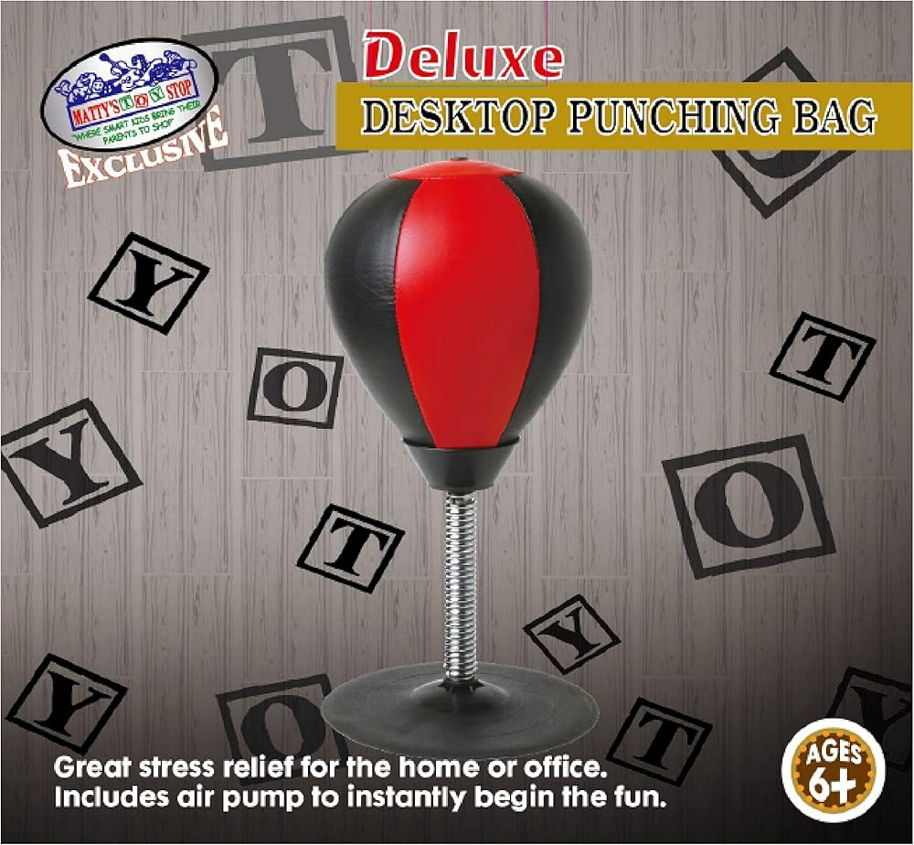 Matty's Toy Stop Desktop Punching Bag (Ball) with Air Pump, for Home or Office Stress Relief! The perfect stress reliever for those hectic days in the office or at home! Small size and suction cup make it the perfect desktop toy (measures 7"L x 7"W x 14.5"H). Comes with a pump to easily maintain inflation. Made of the highest quality materials and is designed to take a beating. Makes a great gift & is perfect for the office, home, schools, gyms, gag gifts & so much more! For Ages 6 and up - Fun for the whole family! - Includes Pump.