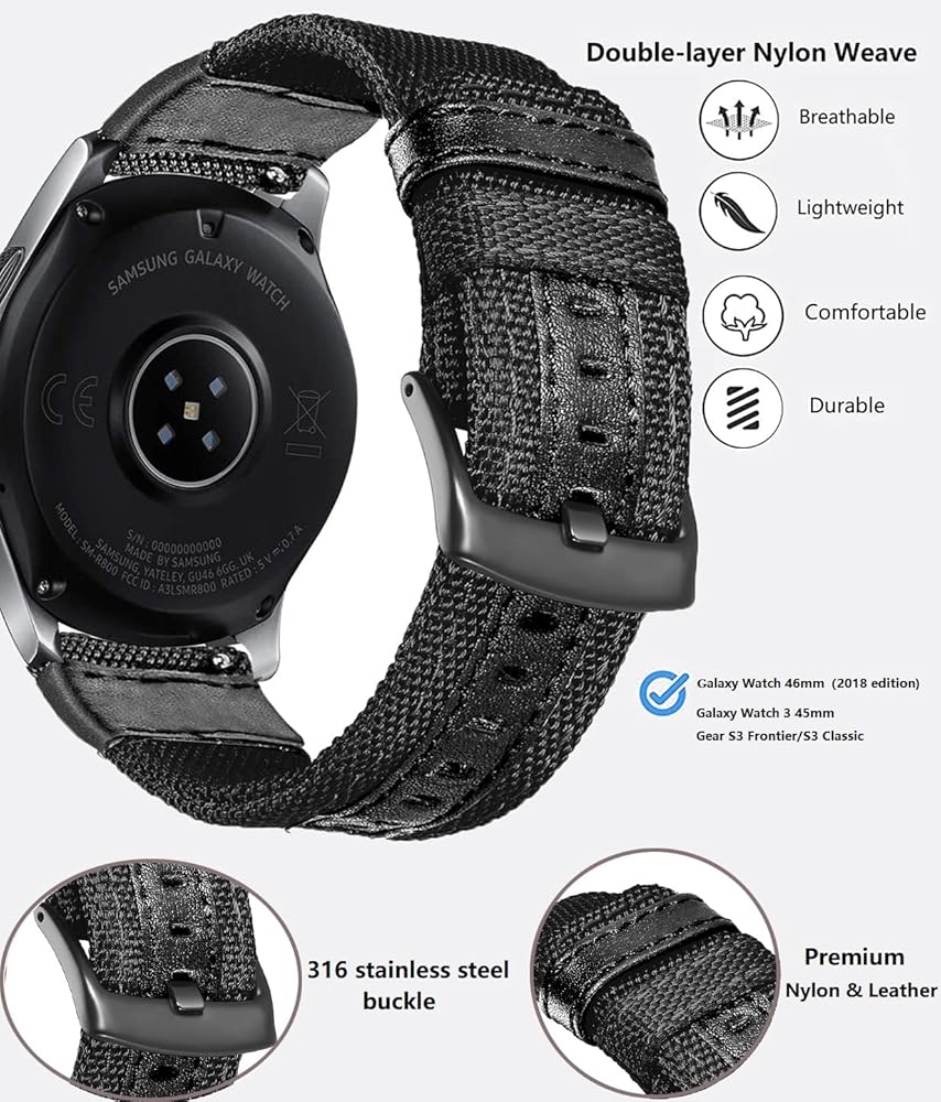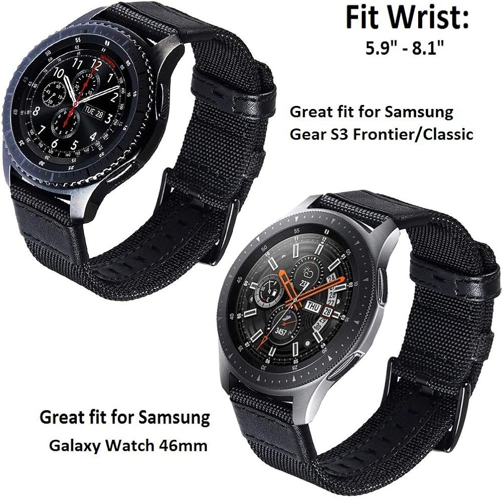 تصميم مثالي إطلاق سريع 22 مم (لا حاجة لأي أدوات) سوار ساعة بديل من النايلون لساعة Samsung Galaxy Watch 3 45 مم وساعة Galaxy Watch 46 مم وساعة Gears S3 Classic / Frontier الذكية، مناسب أيضًا لأي ساعة ذكية بإطار 22 مترًا