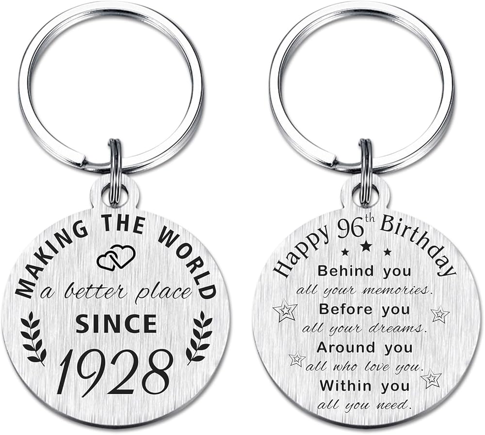 96th Birthday Gifts, Sweet birthday keychain for someone who was born in 1928, Turning 96 year old birthday gifts for women Men, A meaningful birthday keychain to celebrate 96 years old being awesome!