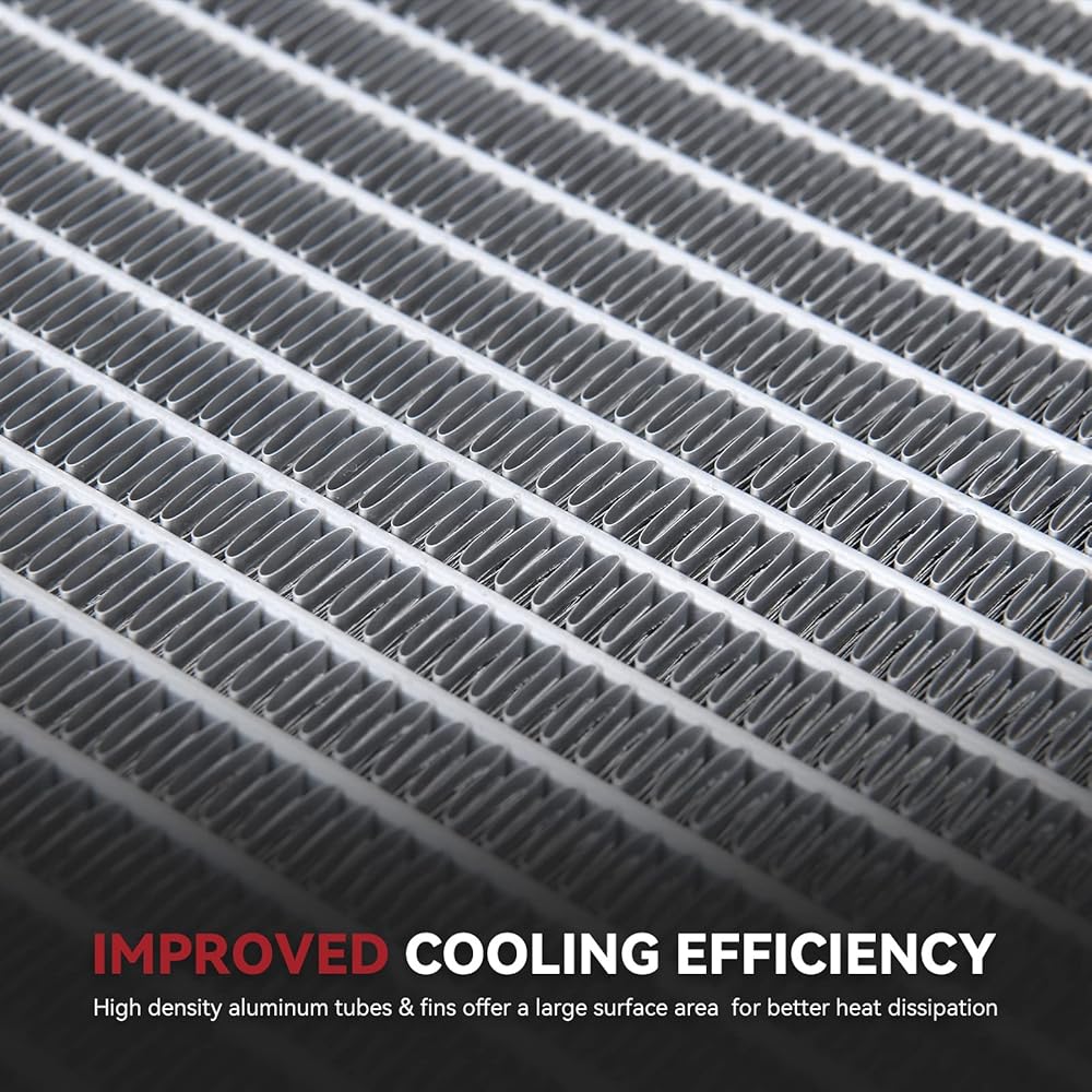 HIGH COOLING EFFICIENCY: The core of this radiator is built with high density aluminum tubes and fins which has a larger radiation area for maximum heat dissipation and stronger rigidity for added durability; Aluminum oil cooler also achieves the optimal cooling effect to ensure the engine works properly.