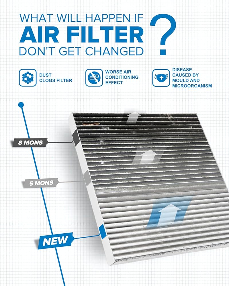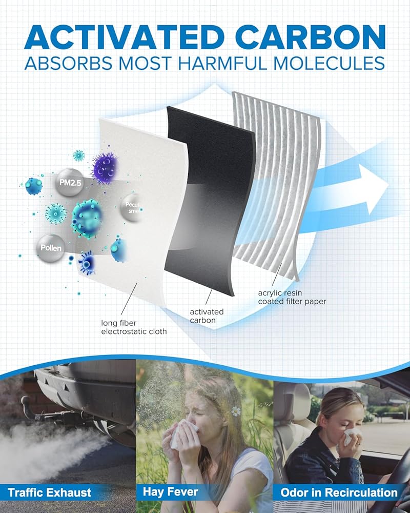 تركيب لمدة 5 دقائق وتوفير المال: الحجم المطابق تمامًا لمرشح كابينة OEM. سهل التركيب خلال 5-8 دقائق دون أي تعديل، مما يوفر الوقت والمال مقارنة بالوكالة. يتم تضمين تعليمات التثبيت في الدليل.