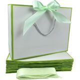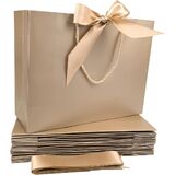 【عالية الجودة】مصنوعة من مواد ورقية عالية الجودة، وهي متينة وقابلة لإعادة التدوير. إنها سميكة بما يكفي لتحمل جيدًا وليس من السهل كسرها، ويمكن استخدامها لفترة طويلة؛ بالإضافة إلى ذلك، فإن مقبض الحمل المزود بشريط من الساتان الذهبي يترك انطباعًا عميقًا بالأناقة.