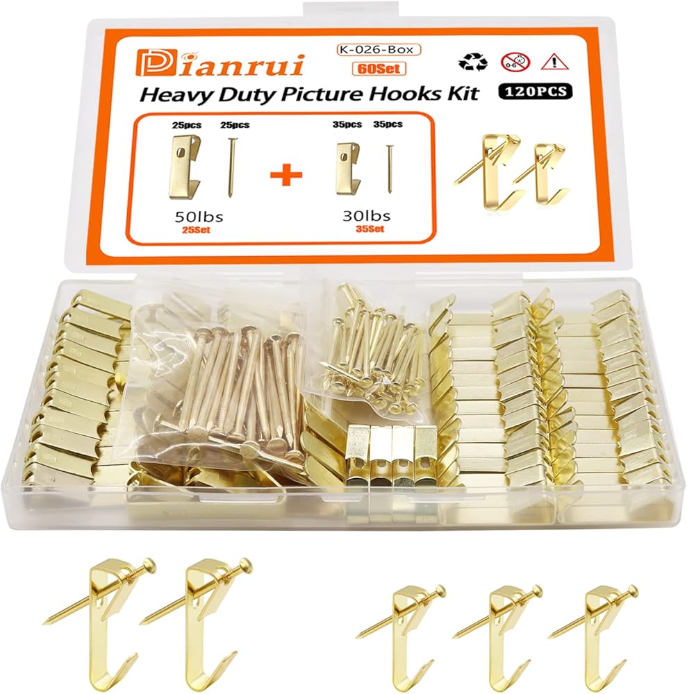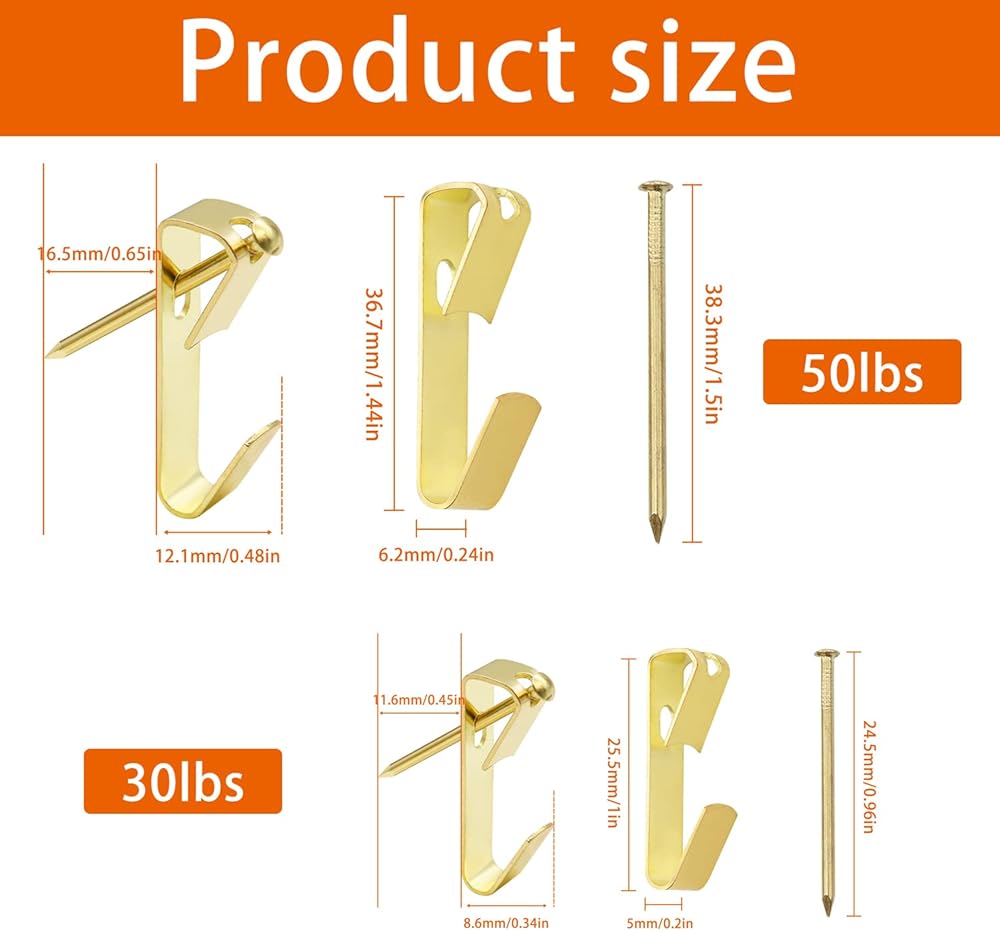 Package: 25pcs 50LBS and 35 pcs 30LBS Picture Hooks with Nails.