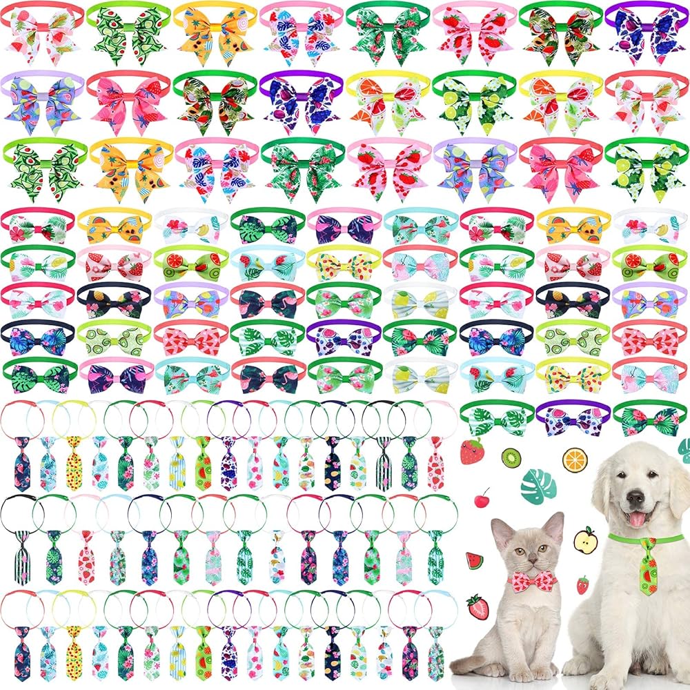 Abundant Quantity: there are 120 pieces of summer pet ties, including 48 pieces of dog bow ties, 48 pieces of dog neckties, 24 pieces of pet bowknot collars, rich quantities and diverse styles can meet your pet's wearing and replacement needs