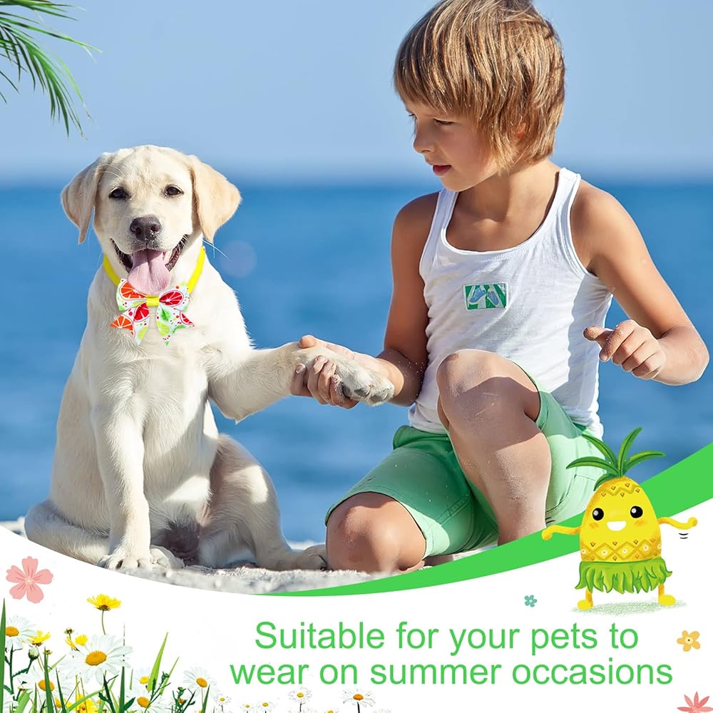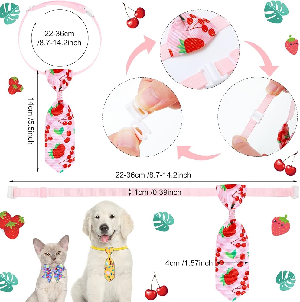 Summer Style: the dog grooming neckties and bow ties are designed with summer theme patterns, like flowers, green plants, watermelons, strawberries, flamingos, oranges, etc, . paired with bright colors, making your pets stand out from the crowd
