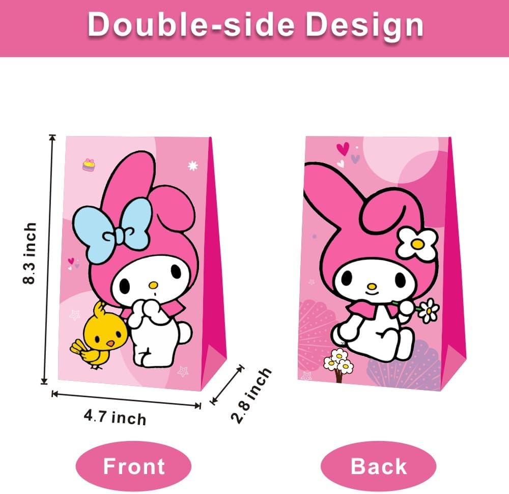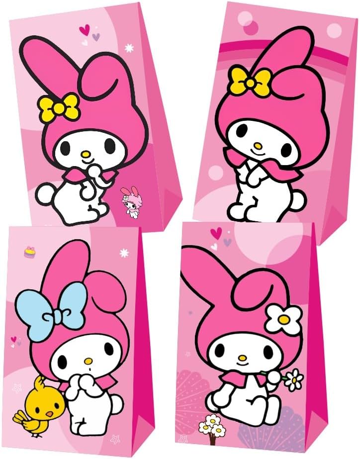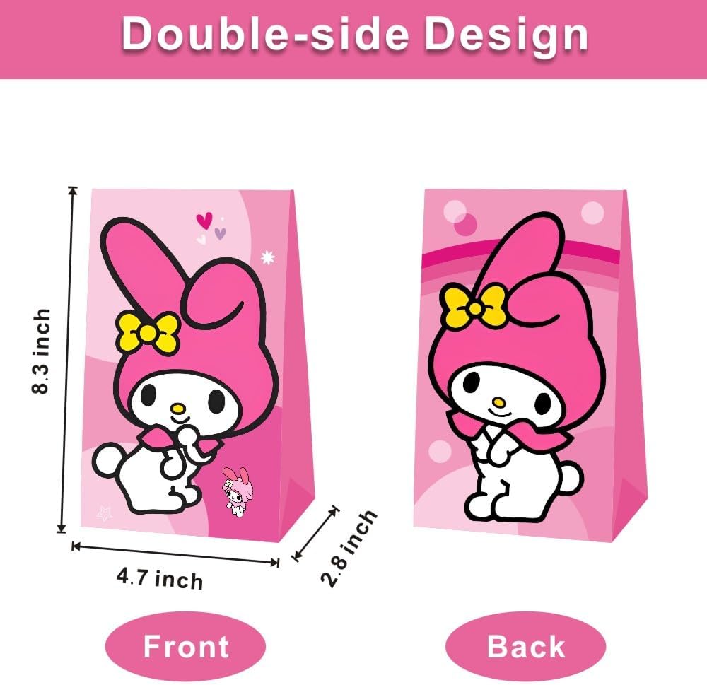 • 【Melody Party Supplies】Package includes 12pcs Melody birthday party bags with 4 different patterns. Perfect for Melody party candy bags, goodie bags, treat bags, gift bags.