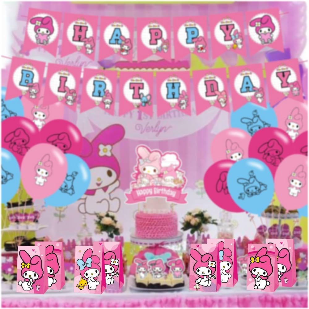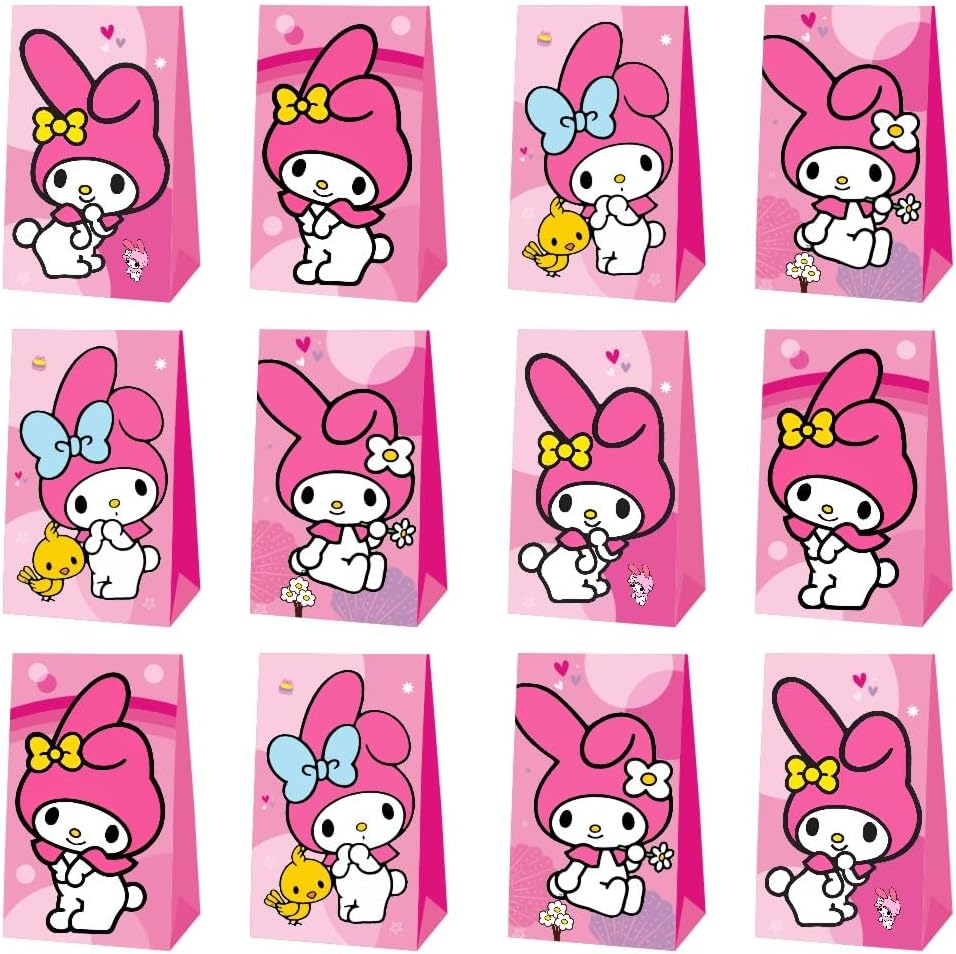 Melody Birthday Decorations, 12pcs Melody Party Favor Gift Bags Goodie Bags for My Melody Party Supplies