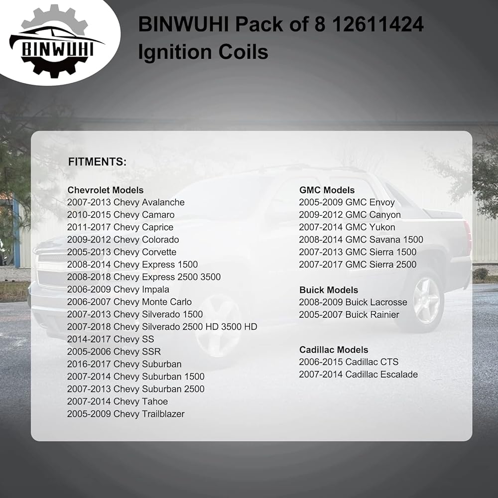 • 【COMPATIBILITY】This C1511 ignition coils replacement for 2007-2013 Chevy Avalanche | 2010-2015 Chevy Camaro | 2011-2017 Chevy Caprice | 2009-2012 Chevy Colorado | 2005-2013 Chevy Corvette | 2008-2014 Chevy Express 1500 | 2008-2018 Chevy Express 2500 3500 | 2006-2009 Chevy Impala | 2006-2007 Chevy Monte Carlo | 2007-2013 Chevy Silverado 1500 | 2007-2018 Chevy Silverado 2500 HD 3500 HD | 2014-2017 Chevy SS | 2005-2006 Chevy SSR.