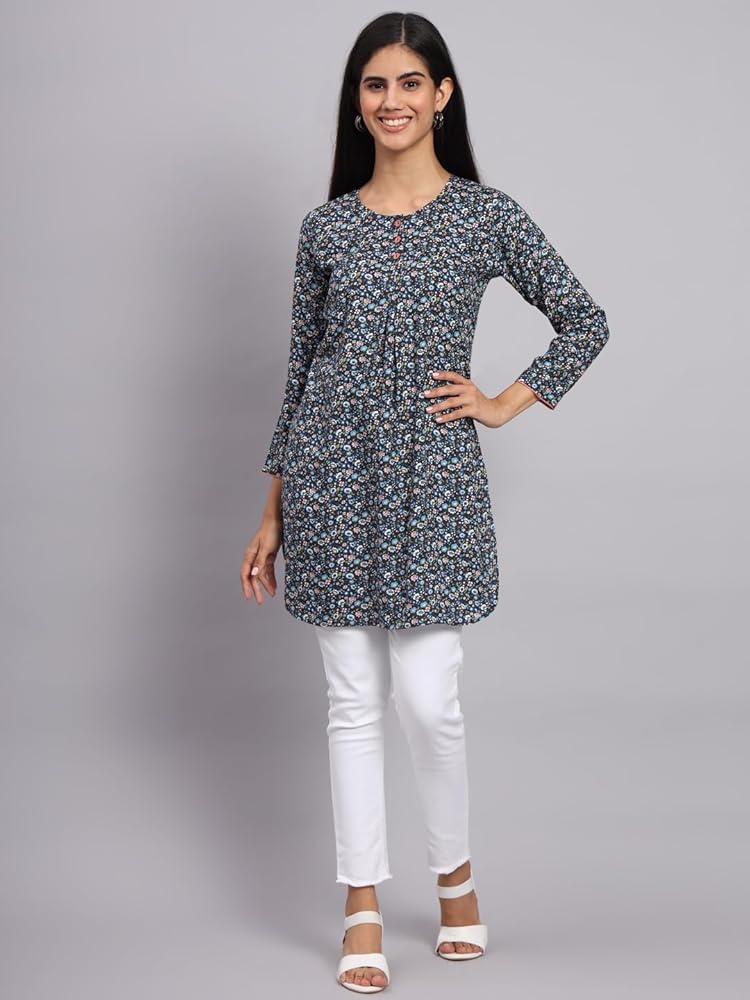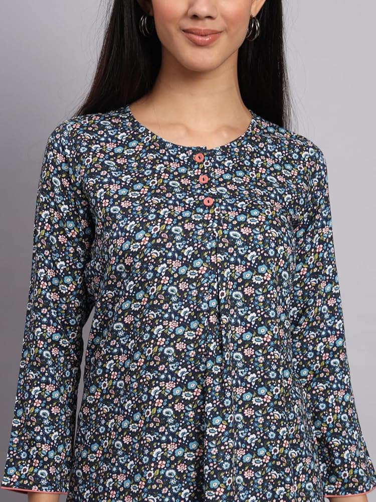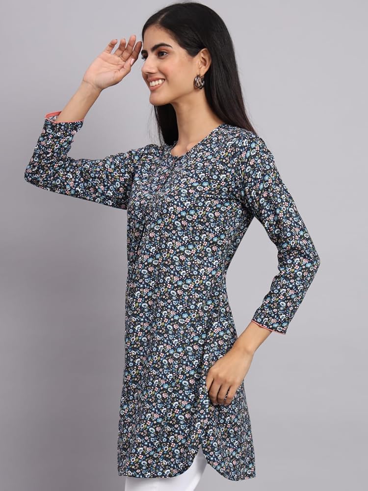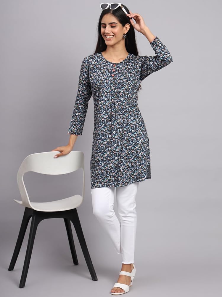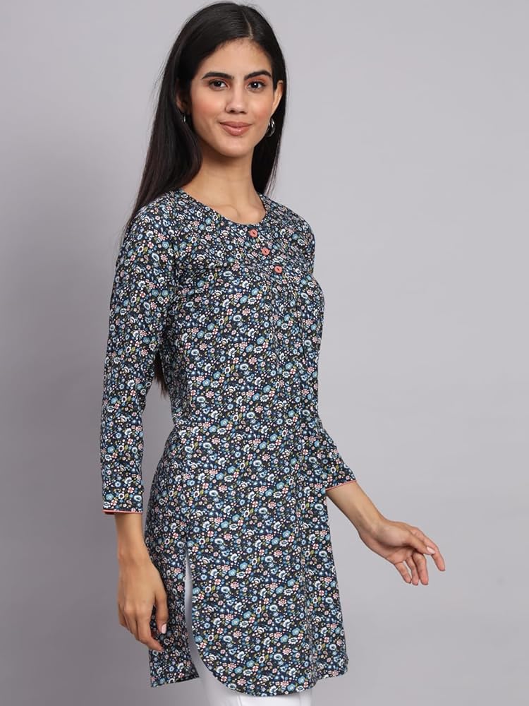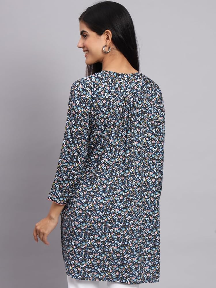 Presenting the Women's Multicolor Floral Printed Straight Kurti by Tissu Clothing – an exquisite ethnic masterpiece meticulously designed to align with the refined taste and preferences of contemporary women. This exclusive attire showcases a mid-thigh length, adorned with 3/4 sleeves and a graceful round neck, merging style and comfort seamlessly. The kurti features exquisite piping details on the sleeves, adding an elegant touch. Designed for your comfort, this kurti boasts front openable buttons. Crafted from premium rayon fabric, it offers a luxuriously soft and skin-friendly texture. Its versatility makes it suitable for a myriad of occasions, spanning from vibrant parties and professional office settings to relaxed casual outings and traditional ethnic gatherings. Wearing this kurta ensures that you'll effortlessly captivate attention at any gathering, bestowing an extra layer of sophistication to your overall appearance. This kurta exudes timeless elegance, making it a flawless choice to enhance your wardrobe with a blend of grace and allure. Consider it a perfect selection to elevate your style with impeccable taste.