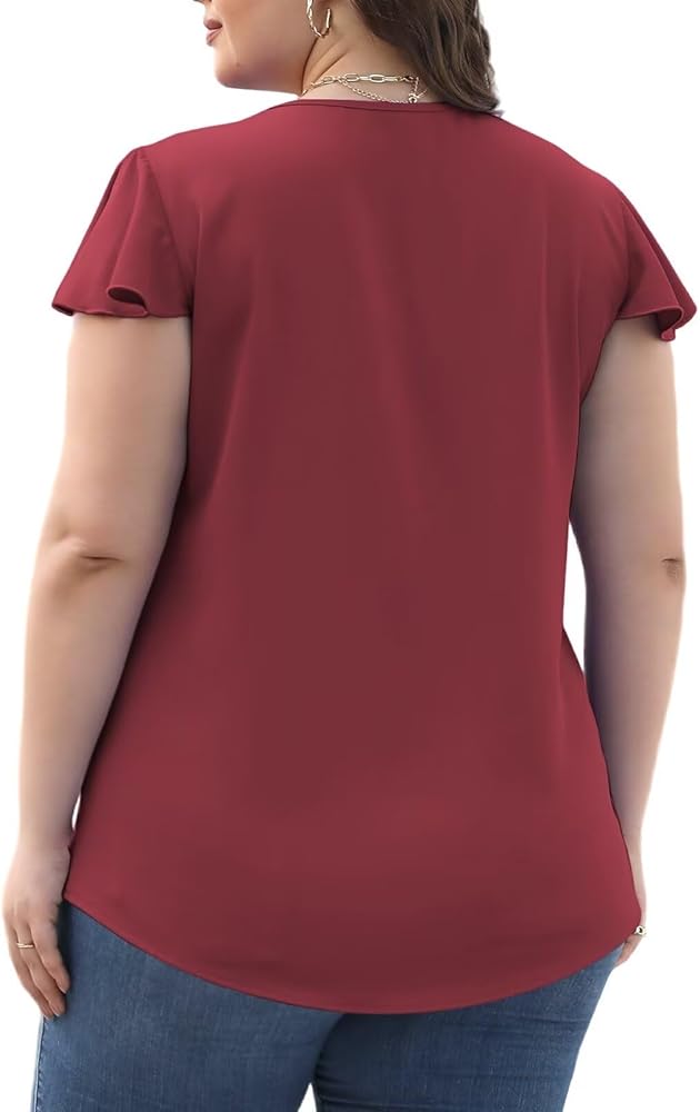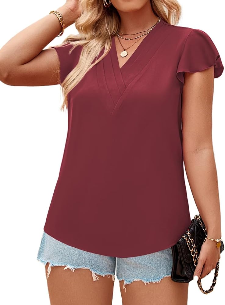 - تتميز قمصان الصيف النسائية ذات الحجم الكبير برقبة على شكل حرف V مثيرة وأكمام مكشكشة عصرية، وتصميم فضفاض رائع لأي شكل جسم