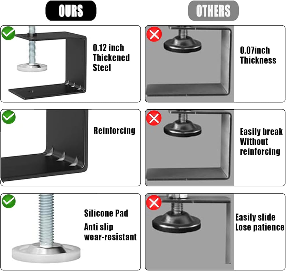 【وسادة سيليكون ناعمة مضادة للانزلاق】كل مشبك على شكل حرف C من الألومنيوم مجهز بوسادة مطاطية مضادة للانزلاق، تمنع الوسادات المطاطية المحدثة على أجزاء المشبك سطح الخزانة من التلف أثناء التركيب. تجنب ترك علامات على خزاناتك.