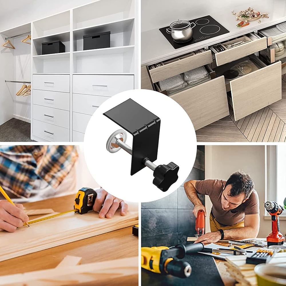 【مشبك تثبيت أمامي للدرج الاحترافي】إذا قمت بتعليق الخزانات، فإن ذلك يجعل من السهل ربط المقدمة لأعلى لتوصيل الخزانات ببعضها البعض، بدلاً من القلق إذا كانت مصطفة، فإنها تتصل ببساطة شديدة. امسك قطعتي العمل معًا عن طريق تدوير البراغي على المشبك على شكل حرف C شديد التحمل، لضمان وجودها في المكان الصحيح. كما يمكن تعليق المصابيح / الحبال على شعاع معدني. يمكن تثبيته بسهولة على المكاتب والعربات والمقاعد وطاولات العمل والأعمدة ومساند الرأس بالمشابك.