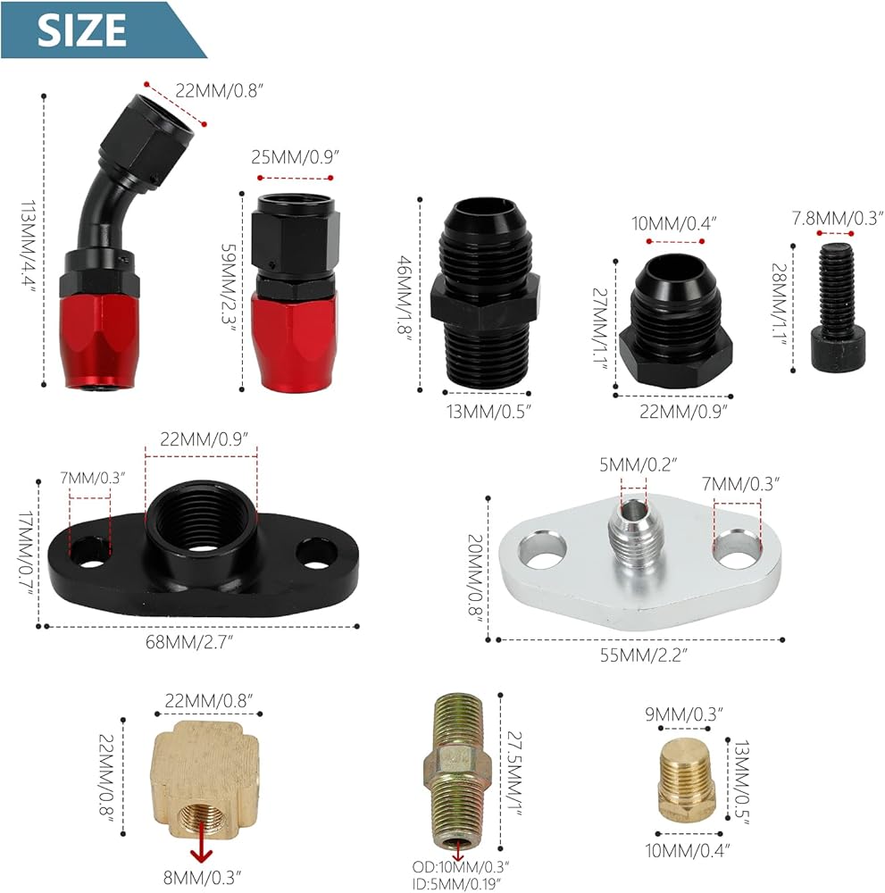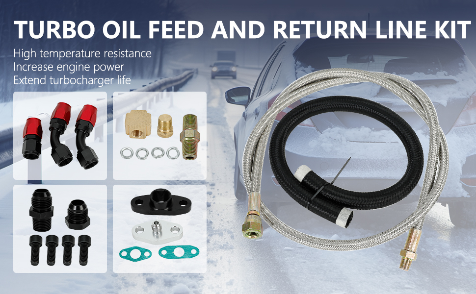 - تتضمن العبوة: تتضمن 1X خط إرجاع الزيت، 1X خط تغذية الزيت، الشفاه، الحشيات، البراغي، الغسالة، التركيبات. جميع المجموعات الموضحة في الصورة.
