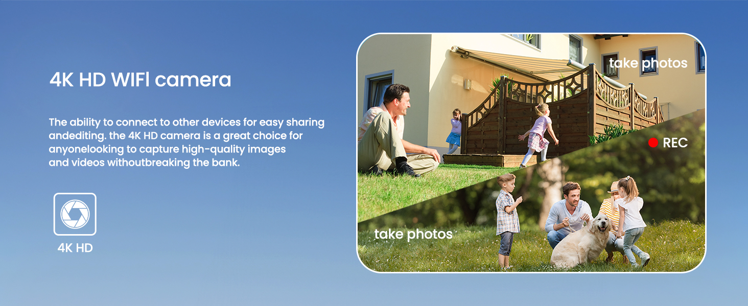 【طائرة بدون طيار كاميرا 4K فائقة الوضوح وقابلة للتعديل】تأتي هذه الطائرة بدون طيار FPV مع كاميرا 4K عالية الوضوح مع 90 درجة قابلة للتعديل توفر صورة عالية الدقة، مما يتيح إطلاق العنان لإبداعك من منظور جديد تمامًا. فهو يسمح لك بالتقاط كل لحظة رائعة، ويتيح لك الاستمتاع بصور ومقاطع فيديو بدقة 4K من خلال التطبيق. من خلال توصيل هاتفك أو جهاز iPad بالطائرة بدون طيار المزودة بكاميرا لمسافات طويلة، يمكنك الاستمتاع برؤية بانورامية في الوقت الفعلي ومشاركتها بسهولة على منصات الوسائط الاجتماعية الخاصة بك.